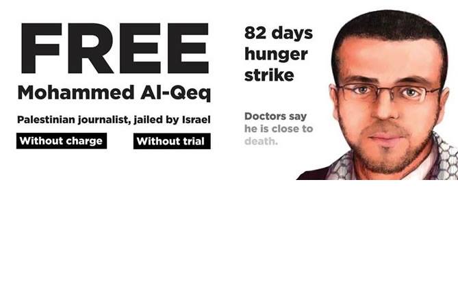 Muhammad Al Qiq is 79 days on hunger strike and near to death. He is a Palestinian journalist who has been jailed under administrative detention by Israel, without charge, for about three months now and is striking in protest at this illegal arbitrary use of internment. He is demanding that he either be released or charged. More details here: http://www.ipsc.ie/