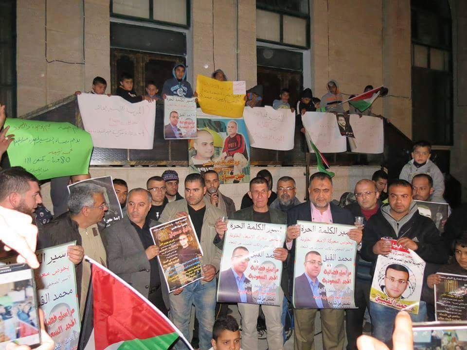 In an urgent press conference convened on Friday night, 12 February, al-Qeeq’s wife, Fayha Shalash, called for meaningful action to free her husband at official and popular levels. Saying that al-Qeeq is “closer to death than to life,” Shalash called for people to take the streets in protest, and demanded action from Palestinian Authority officials as well as Palestinian political parties and factions.