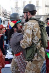 Pallasos en Rebeldia (Clowns in Rebellion) organized a “protest performance” on the streets of Madrid on 31 January, including a street theater performance of Abu Sakha’s arrest, while distributing information calling for his release (Interview here with a member of Pallasos en Rebeldia – in Spanish):