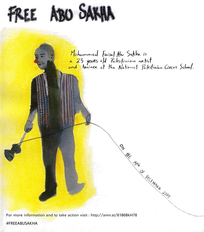International pressure is growing on Israel to free imprisoned Palestinian circus teacher, clown and artist Mohammed Abu Sakha. Abu Sakha, 23, works with the Palestinian Circus School, a Palestinian circus that trains children in acrobatic, clowning and other circus performances, that has built strong relationships with international supporters, especially among circus and performing arts groups.