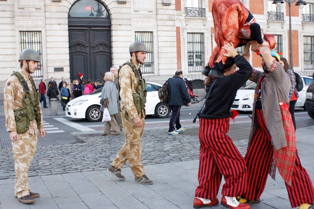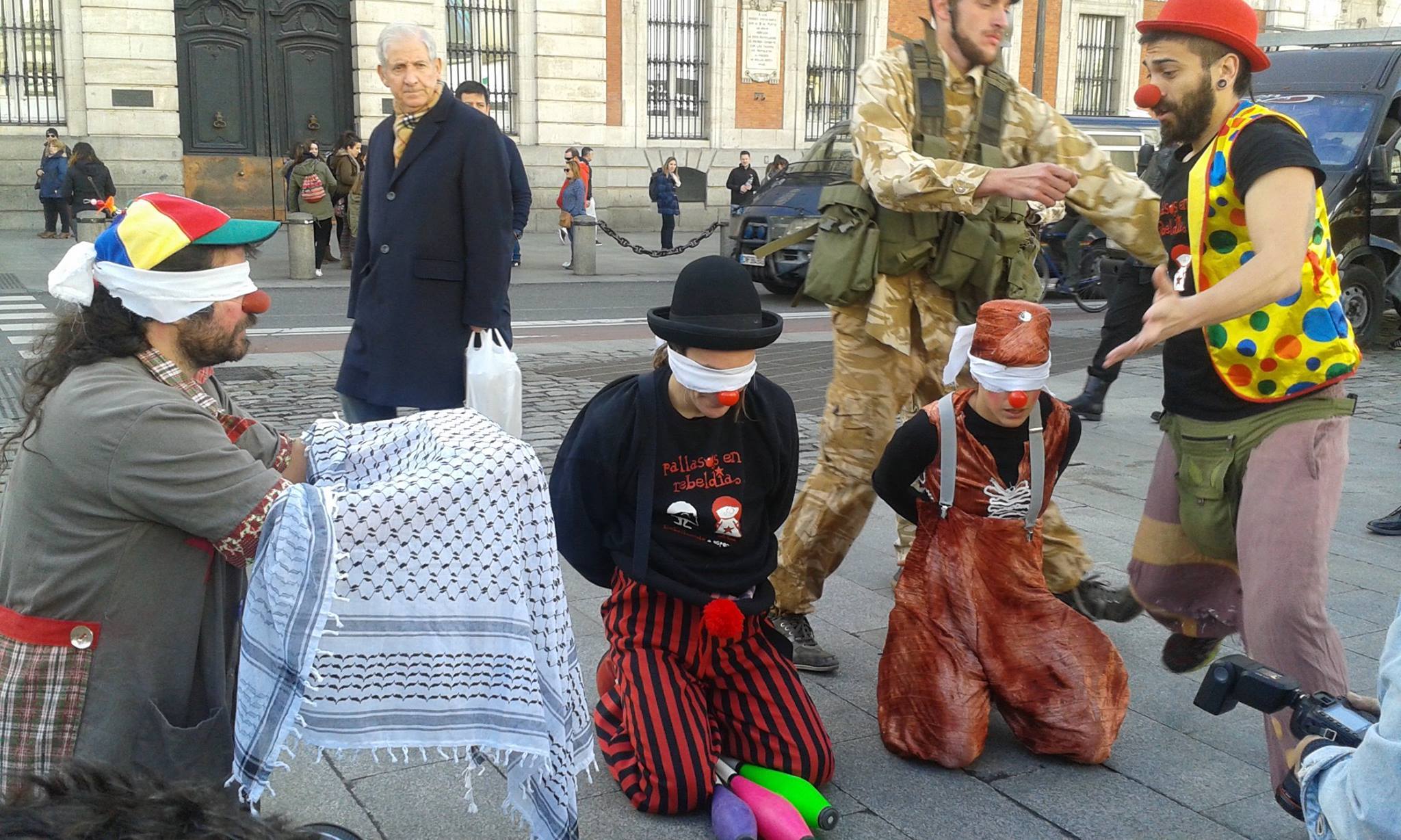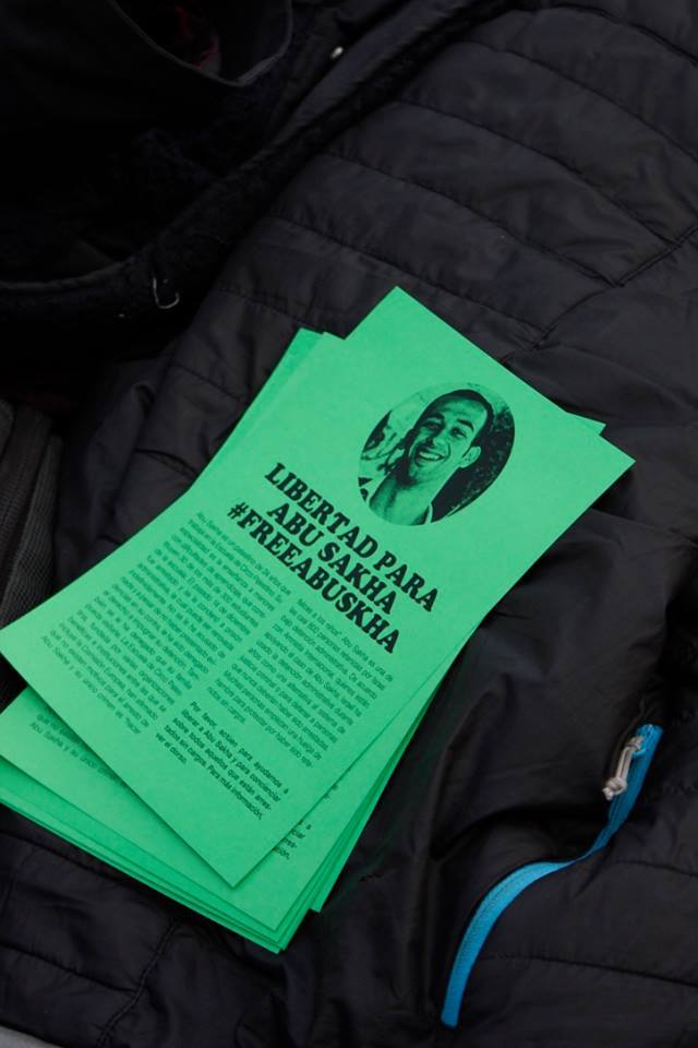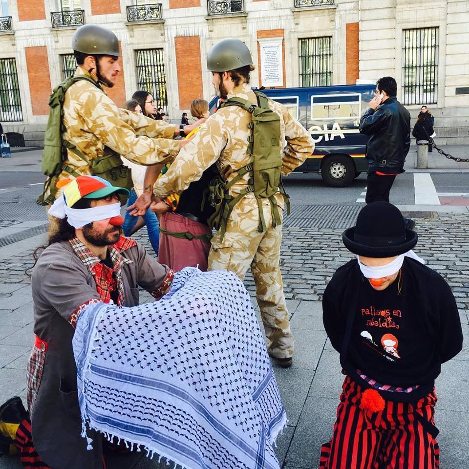 Pallasos en Rebeldia (Clowns in Rebellion) organized a “protest performance” on the streets of Madrid on 31 January, including a street theater performance of Abu Sakha’s arrest, while distributing information calling for his release (Interview here with a member of Pallasos en Rebeldia – in Spanish):