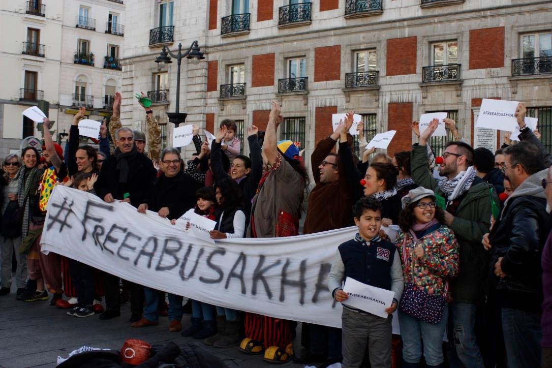 There has been significant international grassroots mobilization in support of Abu Sakha, including tens of thousands signing a petition urging his immediate release and protests and events in countries around the world, including Belgium, the UK and Spain, often led by performance and circus groups, calling for his freedom.