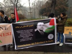 On Saturday, 30 January, the Association of Palestinians in Italy (Associazione dei Palestinesi in Italia) organized a protest at Piazza Castello in Milan, calling for freedom for imprisoned, hunger-striking Palestinian jourrnalist Mohammed al-Qeeq and an end to the siege on Gaza. Al-Qeeq, 33, has been on hunger strike since 25 November 2015 in protest of his torture and then administrative detention without charge or trial.