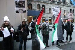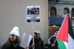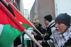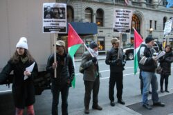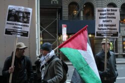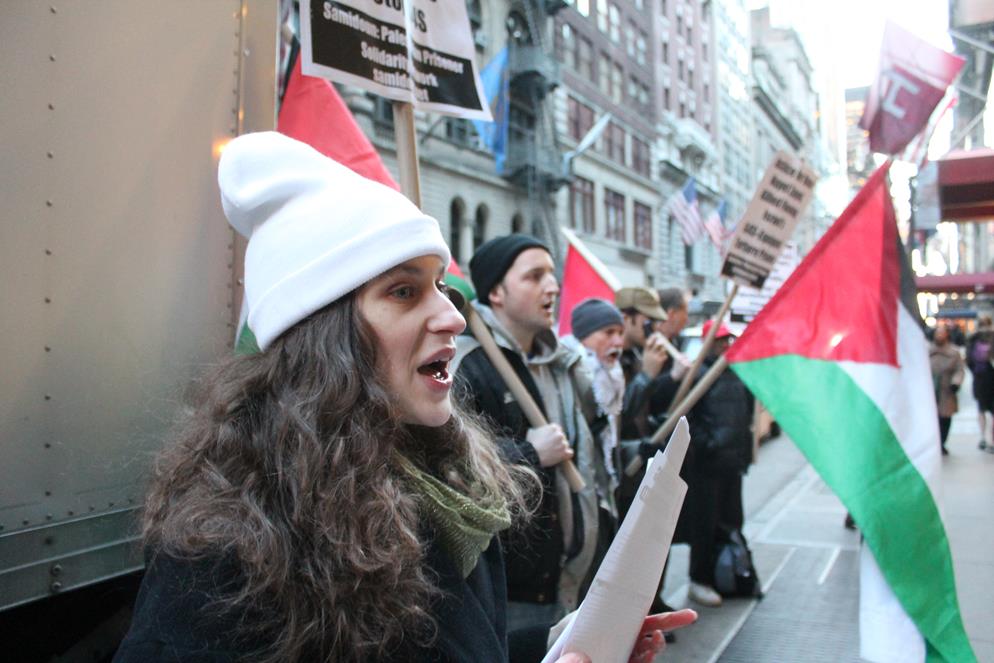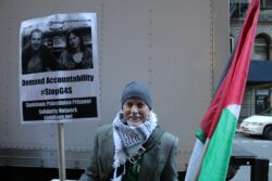 The demonstration, part of weekly actions organized by Samidoun Palestinian Prisoner Solidarity Network in New York City, was joined by representatives of Filipino and Pakistani community organizations, Bernadette Ellorin of BAYAN USA and Comrade Shahid of the Pakistan USA Freedom Forum.