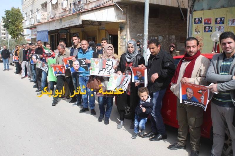 Palestinians in Jenin protested on 11 February outside the headquarters of the International Committee of the Red Cross, calling on Bulgaria to reject the extradition of former Palestinian prisoner Omar Nayef Zayed to the Israeli state.