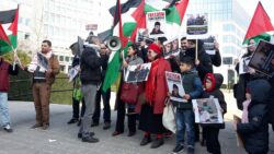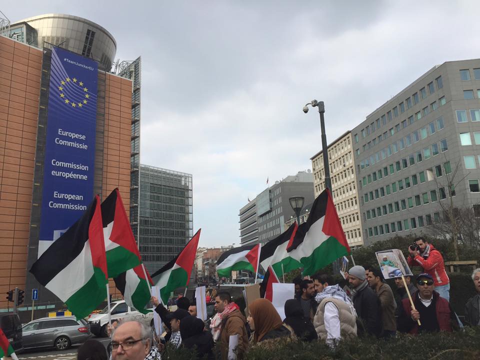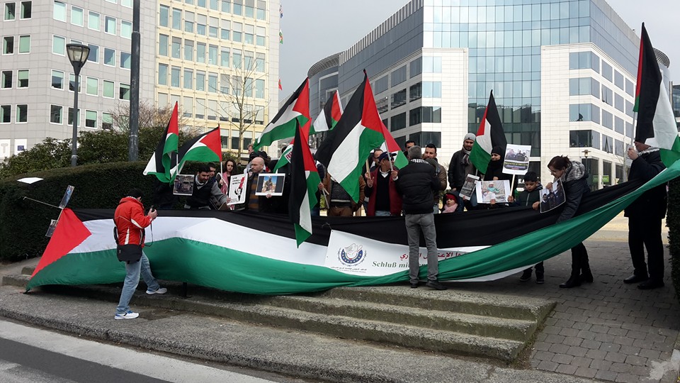 The Palestinian Community in Belgium and Luxembourg rallied against the “field executions” of Palestinian youth by Israeli occupation forces outside the offices of the European Commission in Brussels, Belgium on Friday, March 11.