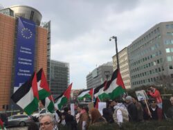 Protesters pointed to the targeting of Palestinian children and youth for Israeli violence, demanding that the European Union end its support for Israel, including the EU/Israel Association free-trade agreement, and take action instead to support boycott, divestment and sanctions against Israel and the implementation of Palestinian rights.