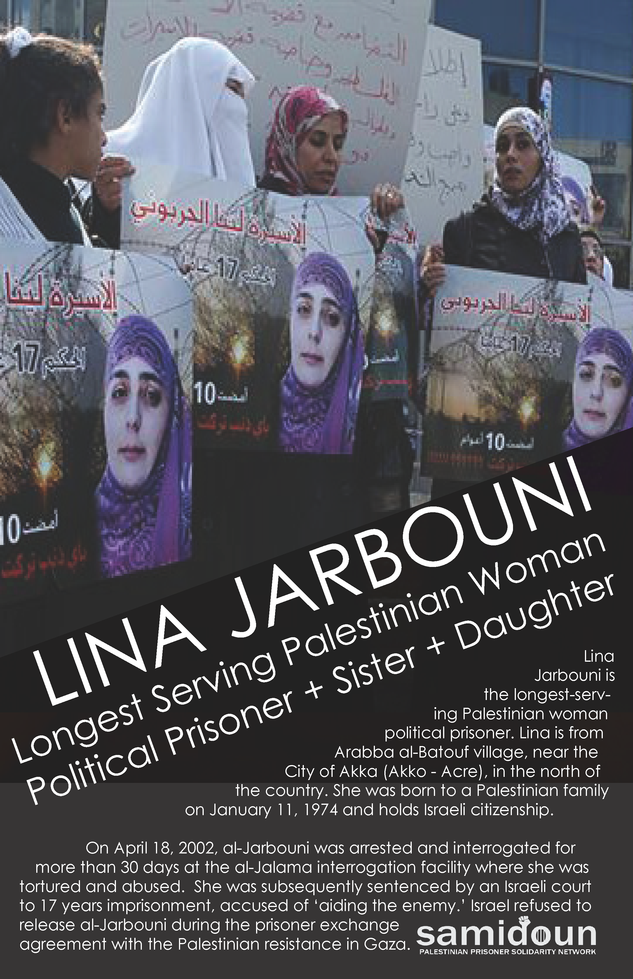 Palestinian prisoners from Occupied Palestine ’48 include the long-time prisoners held since the 1980s as well as Lena Jarbouni, the longest-serving woman Palestinian prisoner; Ameer Makhoul, the imprisoned director of Ittijah, the Union of Arab Community-Based Associations; and Asmaa Hamdan, the 19-year-old Palestinian woman ordered to administrative detention without charge or trial for sending a text message to her family.