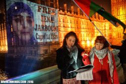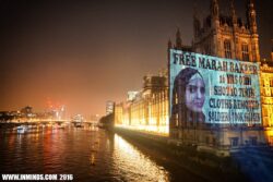 They projected messages and images of the women prisoners on the walls of the Parliament. The projection garnered a wide audience, one person having seen the projection from the London Eye, walked all the way to Westminster to thank the activists for the projection.