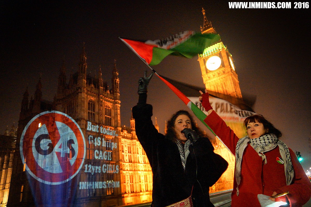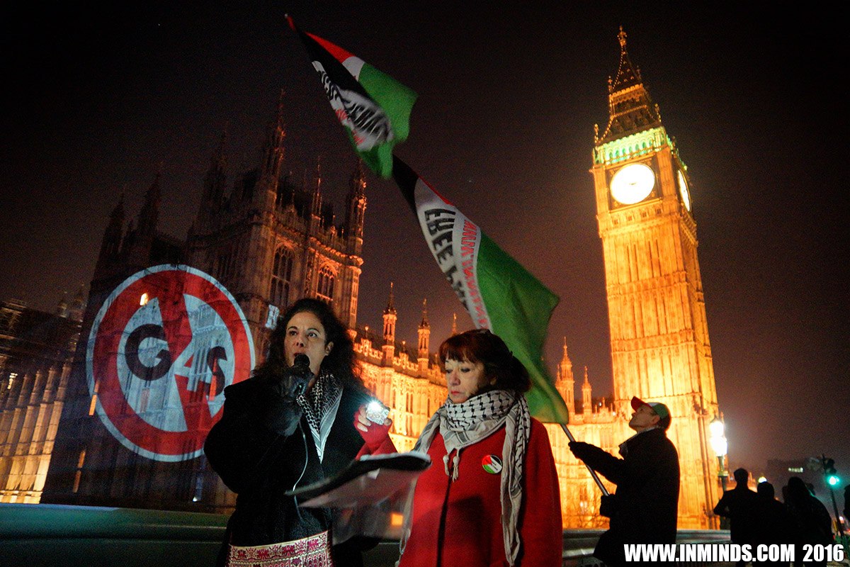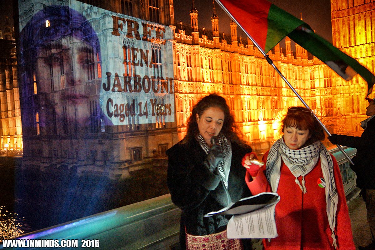 On Friday 11th March 2016, in a week that marked International Womens Day, activists from Inminds gathered outside Westminster Palace, the seat of the British Government, to draw attention to the plight of Palestinian women political prisoners, in particular the 61 Palestinian women and girls who are currently caged in Israeli occupation dungeons.