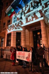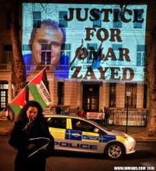 Activists with Inminds protested outside the Bulgarian embassy in London on Friday, 4 March, demanding justice, accountability and transparency in the death of Omar Nayef Zayed, who was found killed one week before, on Friday, 26 February, at the Palestinian embassy in Sofia, Bulgaria. Nayef Zayed had taken refuge in the embassy as he was being pursued for extradition by Bulgarian police following a request for his extradition by the Israeli embassy in Bulgaria in December 2015.