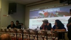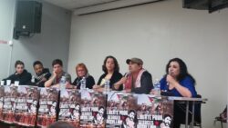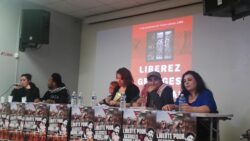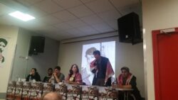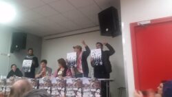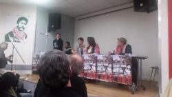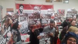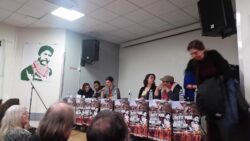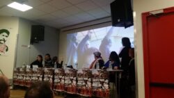 A letter from Georges Ibrahim Abdallah from inside Lannemezan prison was read to the event, which joined parallel events in Bordeaux and Grenoble. A live Skype link with the event in Bordeaux shared greetings between the two mobilizations. “The resurgence of social tensions in the country and the significant ongoing mobilization of youth and unions are leading to the emergence and assertion of an overall atmosphere of struggle, which is conducive to an exchange of ideas and experiences, and thus enriches all of our activity…such an atmosphere of struggle revives our collective memory and the national and international heritage of the struggles of the masses, and the countless revolutionary experiences that are necessary for victory,” wrote Abdallah.