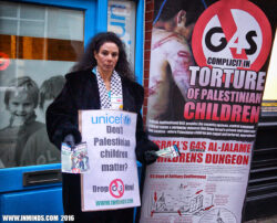 Inminds has been involved in a years-long campaign against G4S in Britain, organizing nearly weekly protests and actions against the corporation’s involvement in the imprisonment of Palestinians.