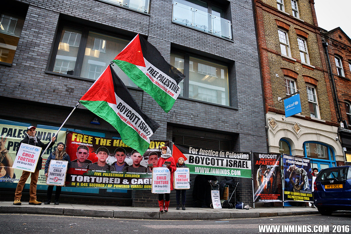 Activists in London protested outside the UK offices of UNICEF on Friday, 18 March, demanding the organization – and all UN institutions – drop their contracts with G4S, the security conglomerate that provides security services and equipment to Israeli prisons, checkpoints and police training centers.