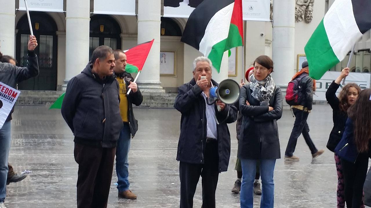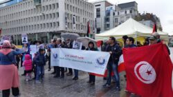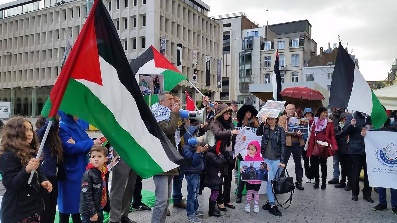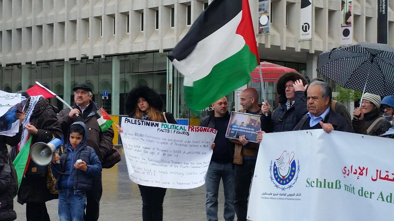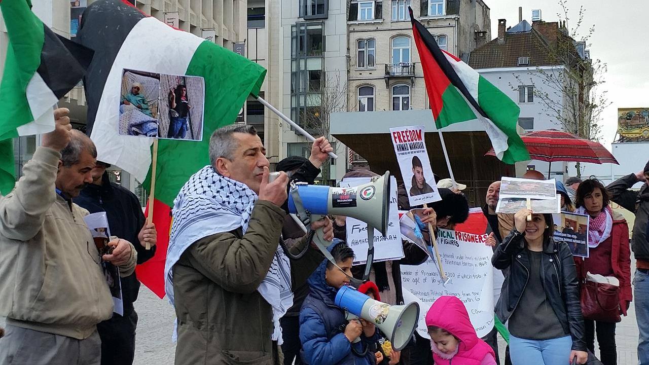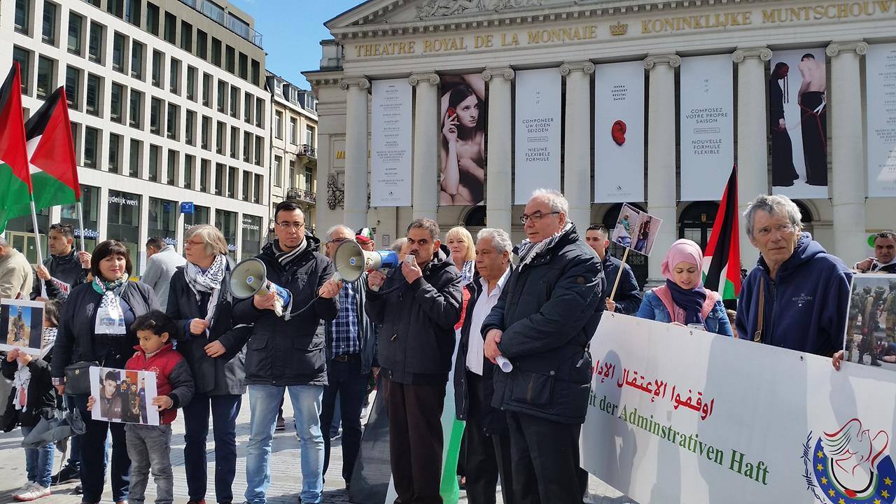 Samidoun Palestinian Prisoner Solidarity Network participated in the protest alongside representatives of the Palestinian Community of Belgium and Luxembourg, the Association Belgo-Palestinienne, Palestina Solidariteit, the European Alliance in Defence of Palestinian Detainees, Plate-forme Charleroi-Palestine, Intal, the European Coordination of Committees and Associations for Palestine, and others, including members of the Tunisian community.