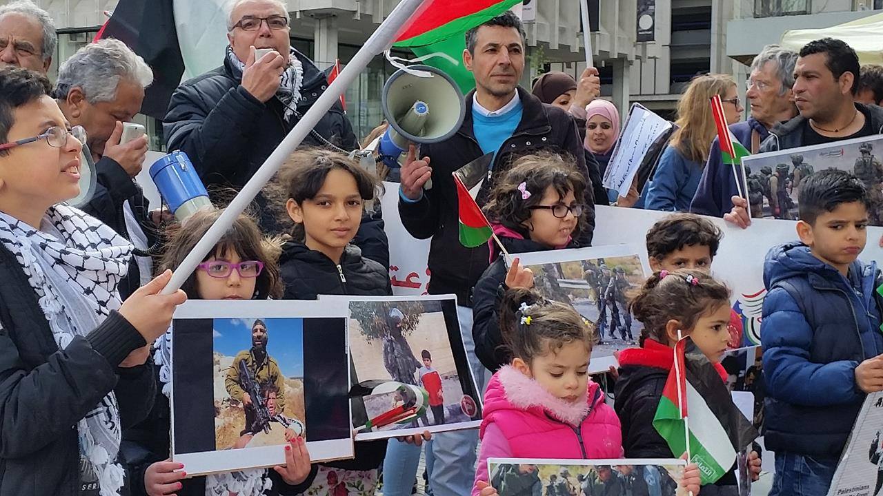 Palestinians and solidarity activists gathered at Place de la Monnaie in Brussels, Belgium on Sunday, 17 April to mark Palestinian Prisoners’ Day and urge freedom for the 7,000 Palestinian prisoners in Israeli jails and for the Palestinian people.