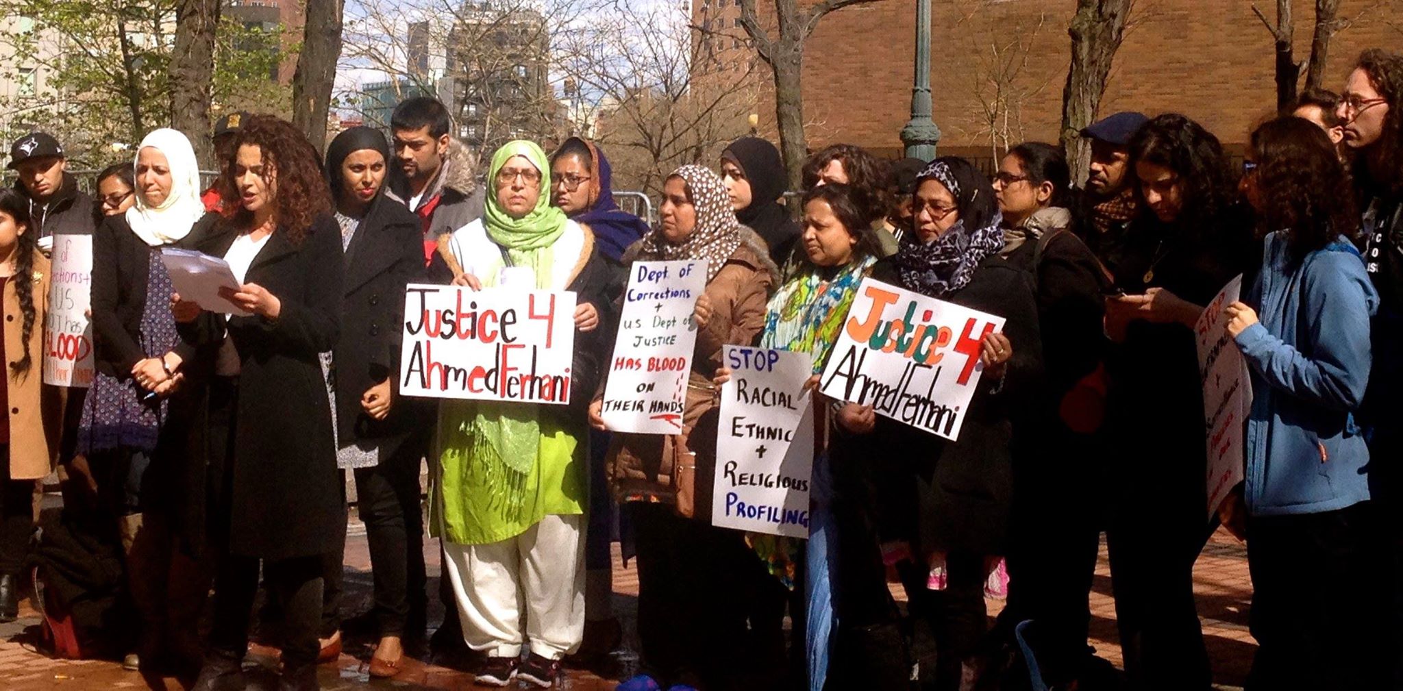 The protest demanded accountability from the Department of Corrections and Department of Justice for the abuse Ferhani suffered in prison, and from the NYPD for its policies of surveillance and targeting of communities that continue to harm not only Ferhani, but entire communities.