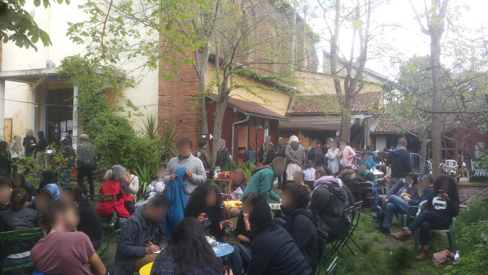 Part of the 10 Days of Popular Self-Defense with activities throughout the city, the afternoon included food and music by Chaabi Kabyle, letter-writing to Palestinian prisoners and prisoners for Palestine, including Georges Ibrahim Abdallah, the Lebanese communist struggler imprisoned for 32 years in French prisons; Khalida Jarrar; Ahmad Sa’adat; Shireen Issawi, and more. The event also followed a protest for Palestinian Prisoners’ Day on Thursday, 14 April in Toulouse.