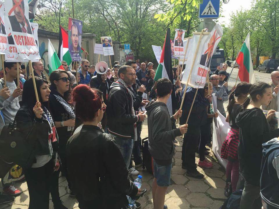 As part of an international call for action, the Palestinian Community in Bulgaria protested outside the Palestinian embassy in Sofia on Friday 8 April, demanding the dismissal of Foreign Minister Riyad al-Malki, and Palestinian ambassador Ahmad al-Madhbouh, as well as the summoning of Madhbouh and other security staff at the embassy for direct questioning and investigation in their role in the death of Palestinian martyr Omar Nayef Zayed.