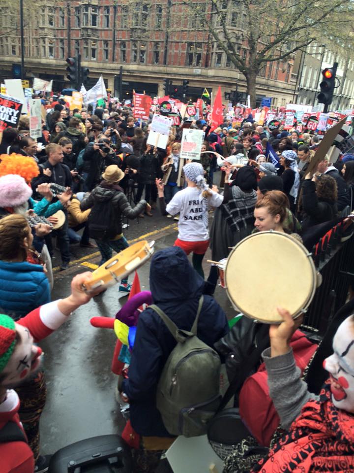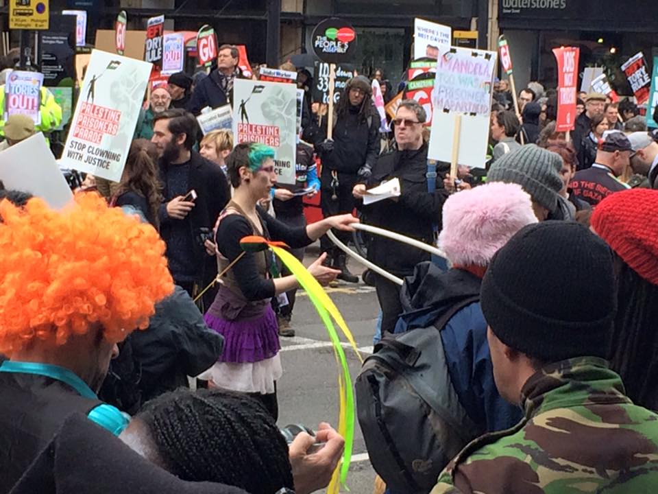 Palestine activists in London marked Palestinian Prisoners’ Day on Saturday, 16 April, joining the mass anti-austerity march through the British capital with a Palestine Prisoners’ Parade.
