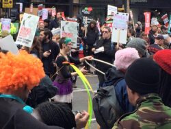 Participants danced dabkeh and capoeira and engaged in performance, street theater and creative protest representing the struggle for freedom for Palestinian prisoners.