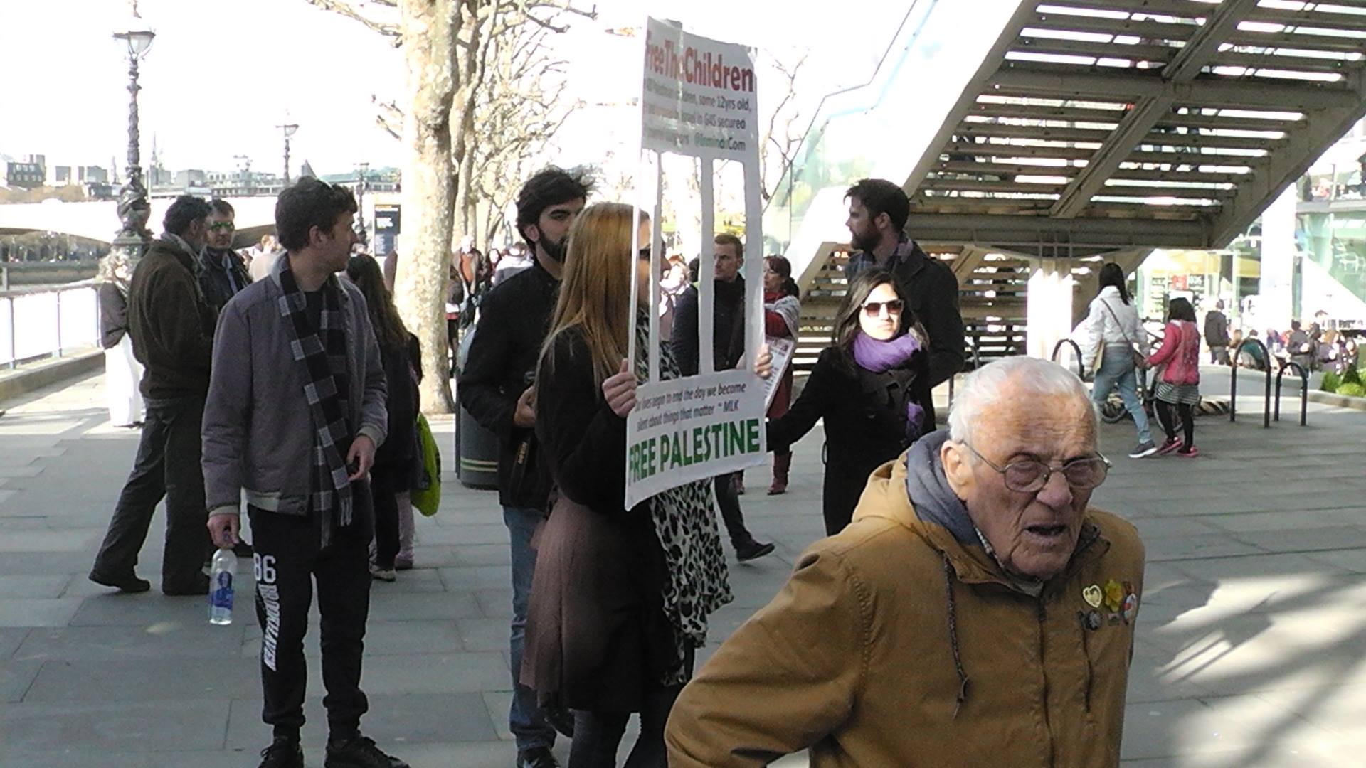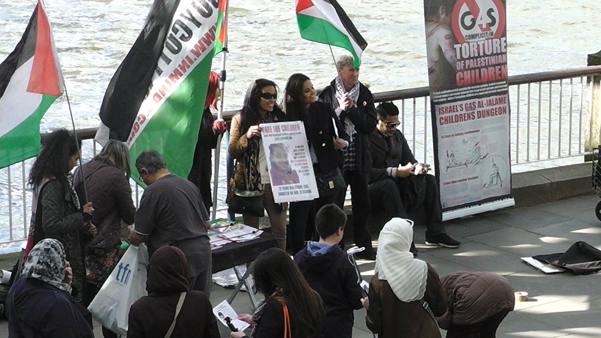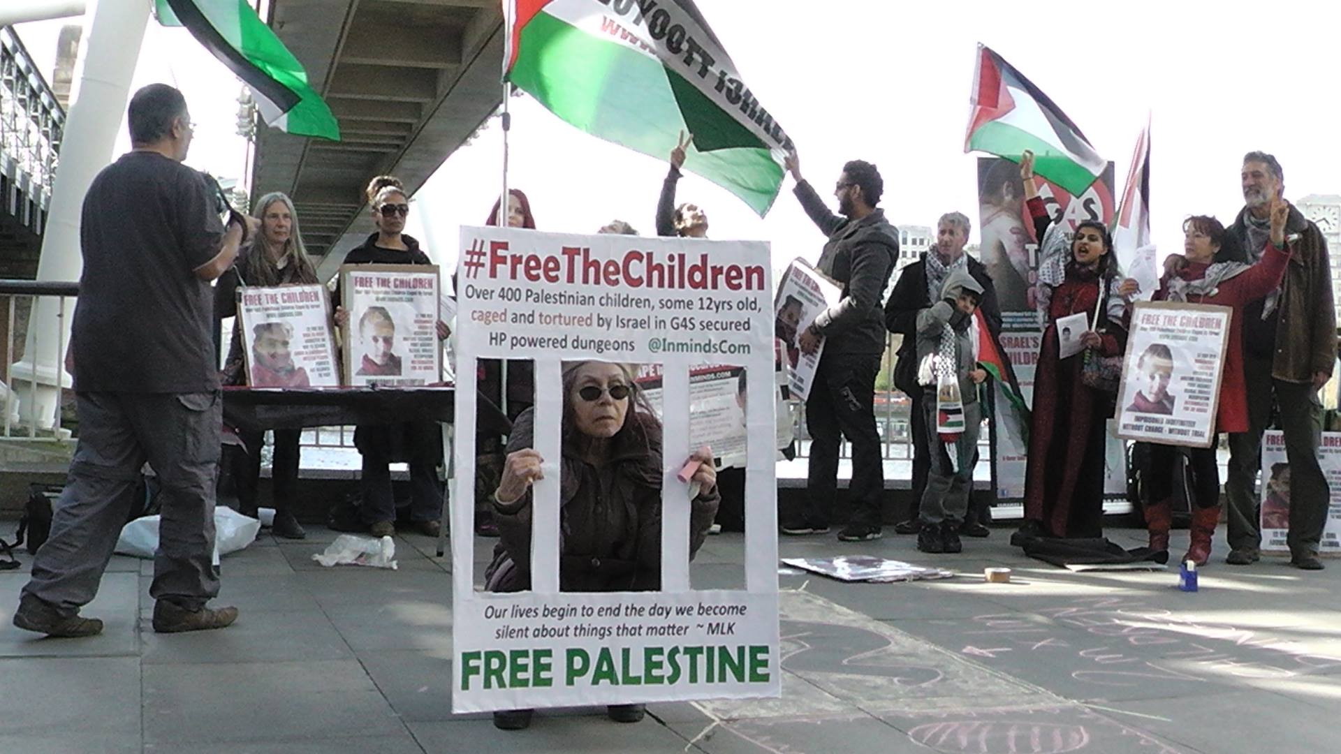 On Sunday, 17 April, London was once again the site of a Palestinian Prisoners’ Day event as Inminds activists distributed information, protested and raised awareness about the situation of Palestinian prisoners – and especially the over 400 imprisoned Palestinian children – at the Southbank.