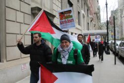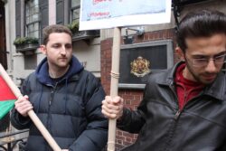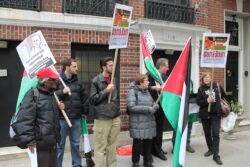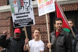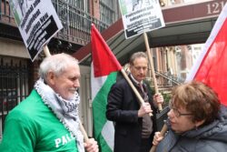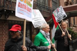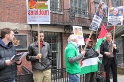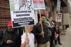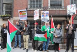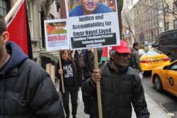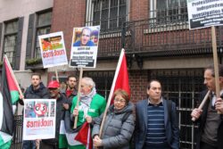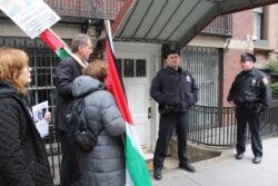 The U.S. State Department liaison, regularly engaged in telephone conversations with staff inside the Palestinian Authority mission, first asked protesters to stay away from the doors of the mission and then to go across the street from the mission; the whole time, participants chanted only “Free Free Palestine,” “Long Live Palestine,” and “Justice for Omar,” carrying Palestinian flags. No one from the mission came to speak with the participants or to express concern or support for Nayef Zayed’s case.