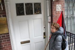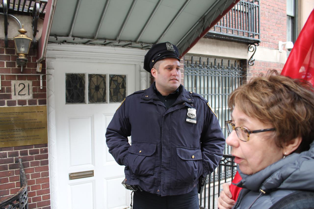 When protesters arrived at the Bulgarian consulate they were met by two New York police officers, who observed the demonstration. When one participant rang the doorbell of the Bulgarian consulate in order to deliver a message from the demonstrators to the consular officials calling for action on the case, the police present attempted to stop her before lawyers participating in the protest affirmed her rights.