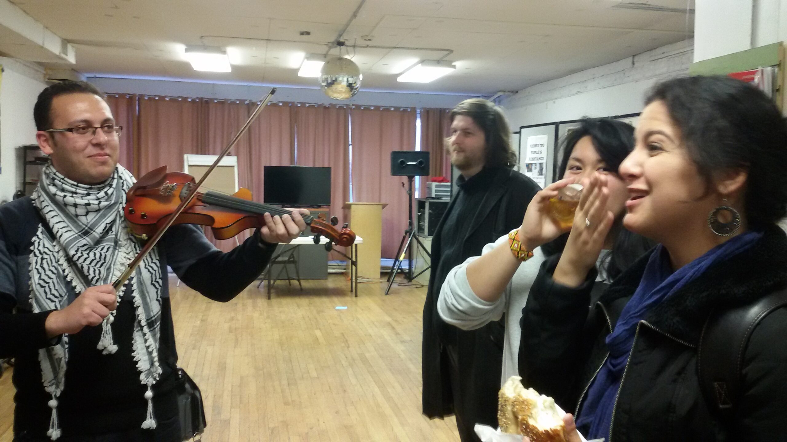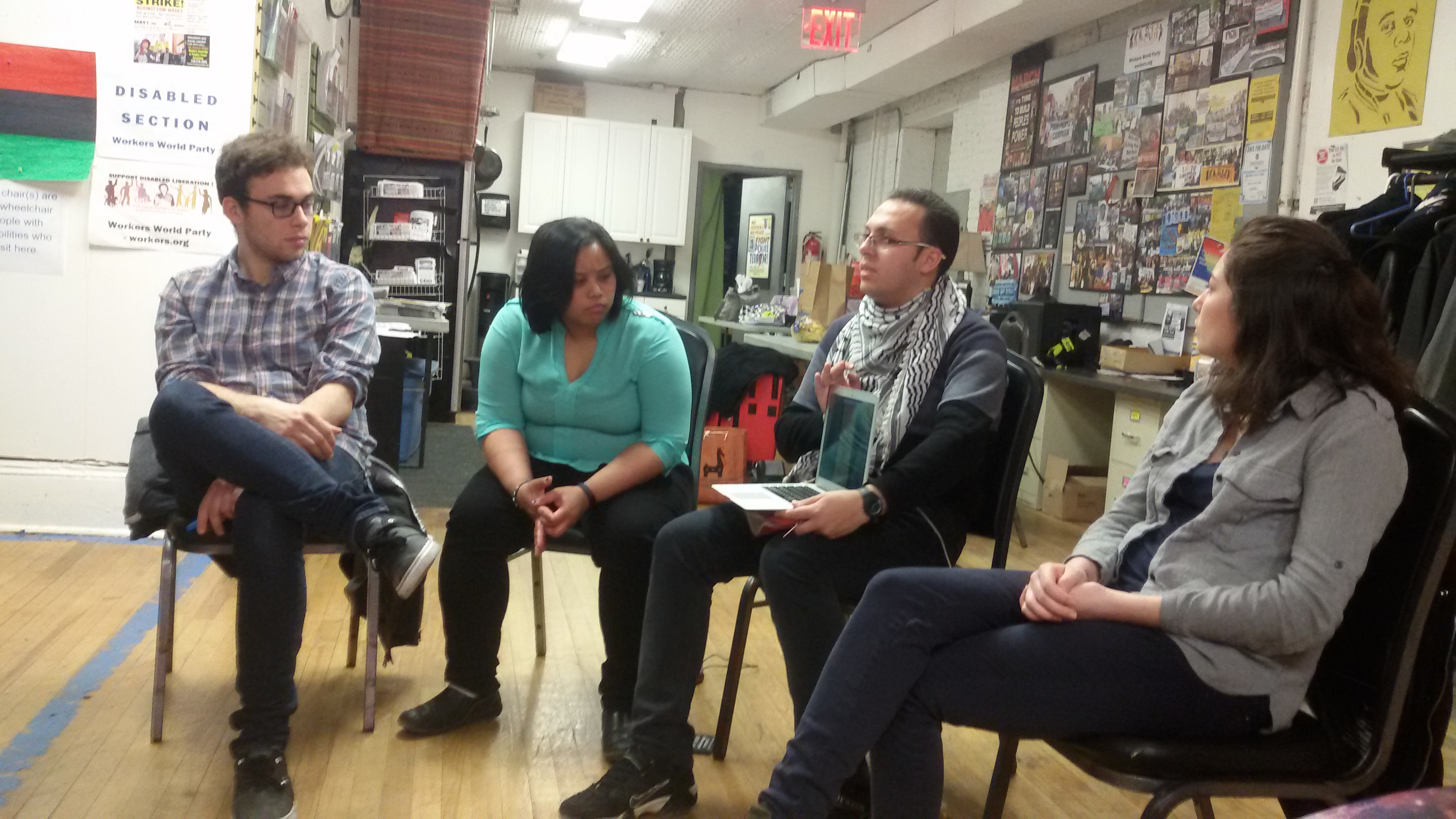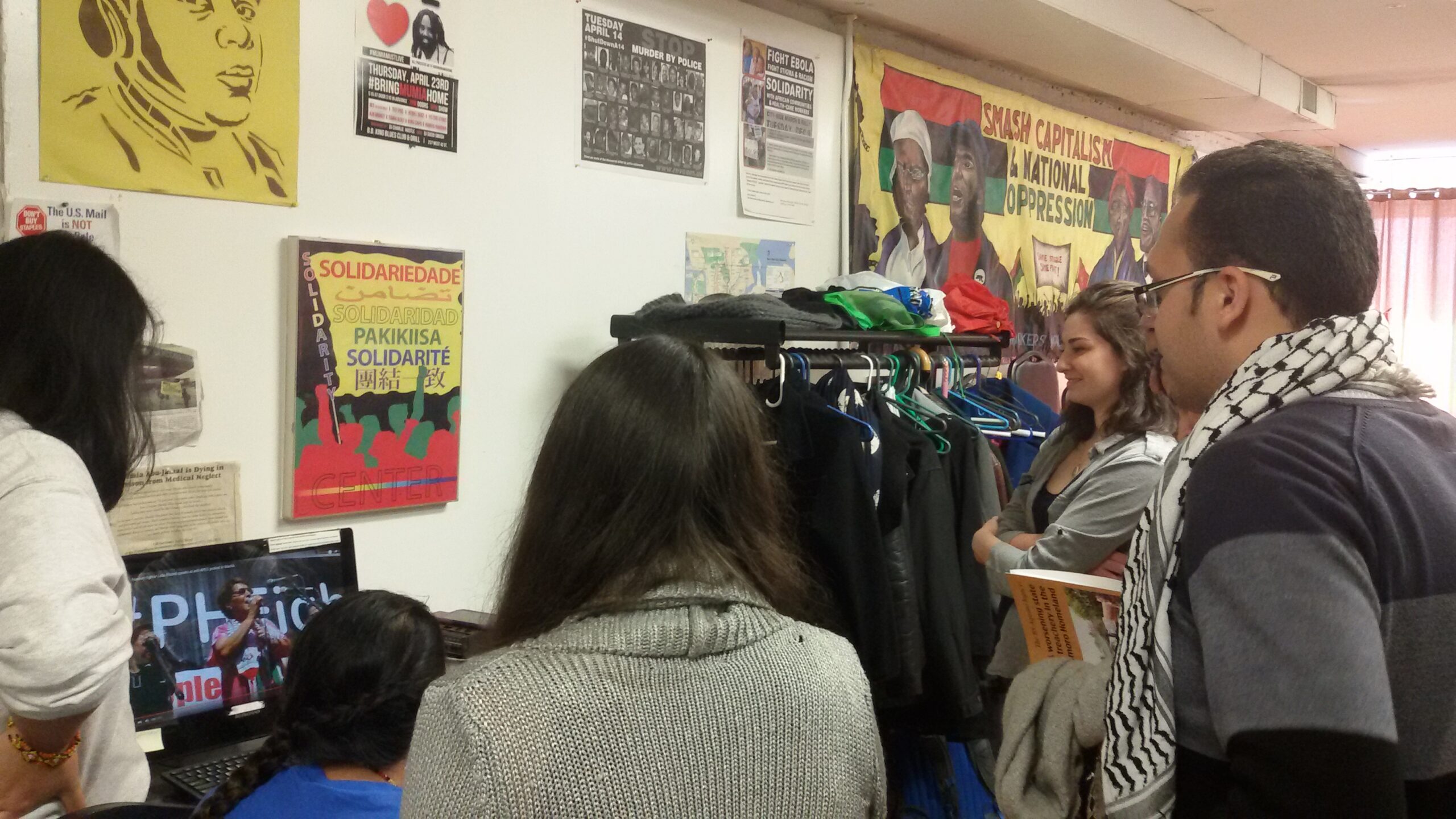 Palestinian students from An-Najah National and Bir Zeit Universities visiting New York City as part of the Right to Education tour currently taking place across the United States joined Samidoun and fellow International League of Peoples’ Struggle (ILPS) members Al-Awda NY, BAYAN USA, International Action Center and Palestinian Youth Movement for a discussion and gathering.