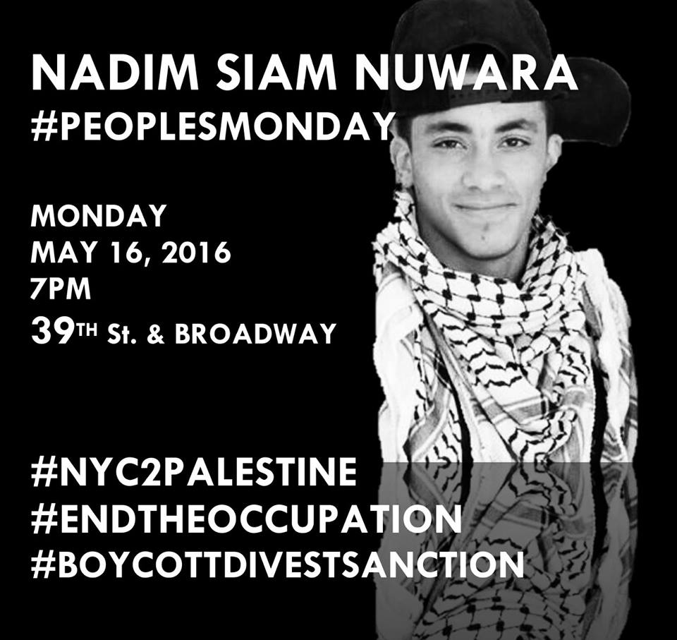 On 15 May 2014, an Israeli Border Police officer took aim at Nadim Nuwara and pulled the trigger of his M16 rifle.