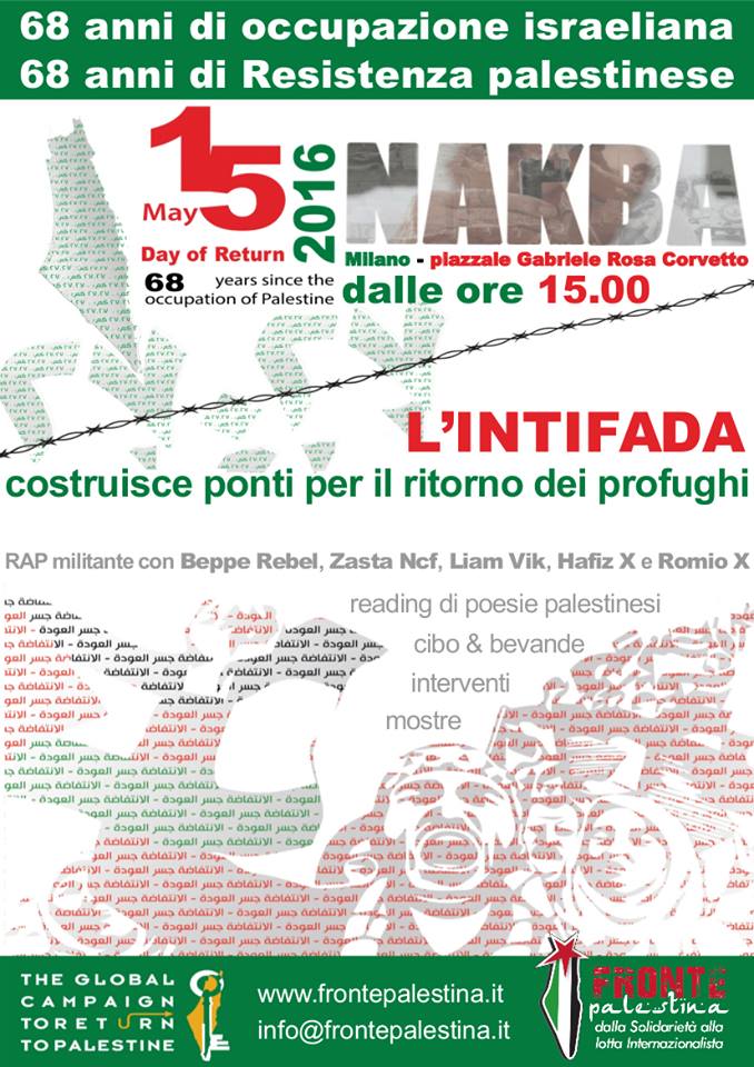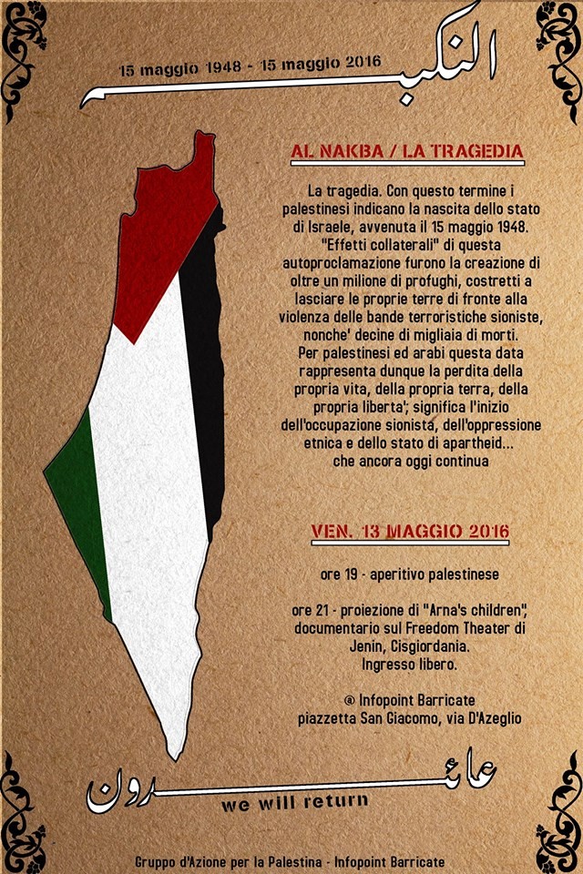 Sunday, 22 May – 68th anniversary of the Nakba in Palestine, Facebook: https://www.facebook.com/events/1284882781525335/