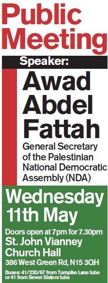 Wed 11 – Awad Abdelfattah (National Democratic Assembly / Balad), London N15