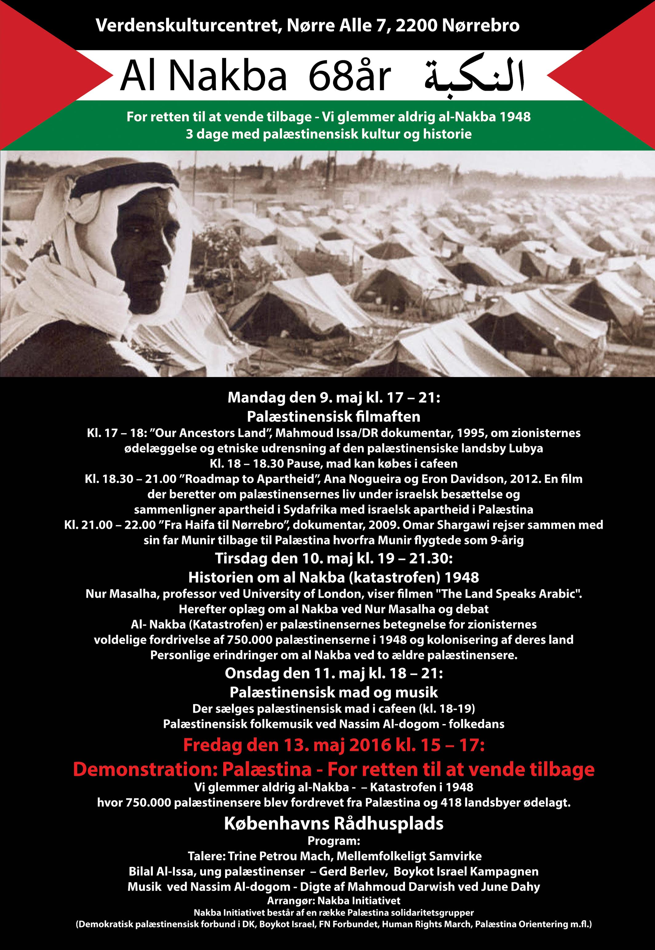 Organized by the Nakba Initiative (Democratic Palestine Committees in Denmark, Boykot Israel, FN Forbundet, Human Rights March, Palaestina Orientering) Facebook: https://www.facebook.com/events/1701774023414034/, https://www.facebook.com/events/231959850498870/