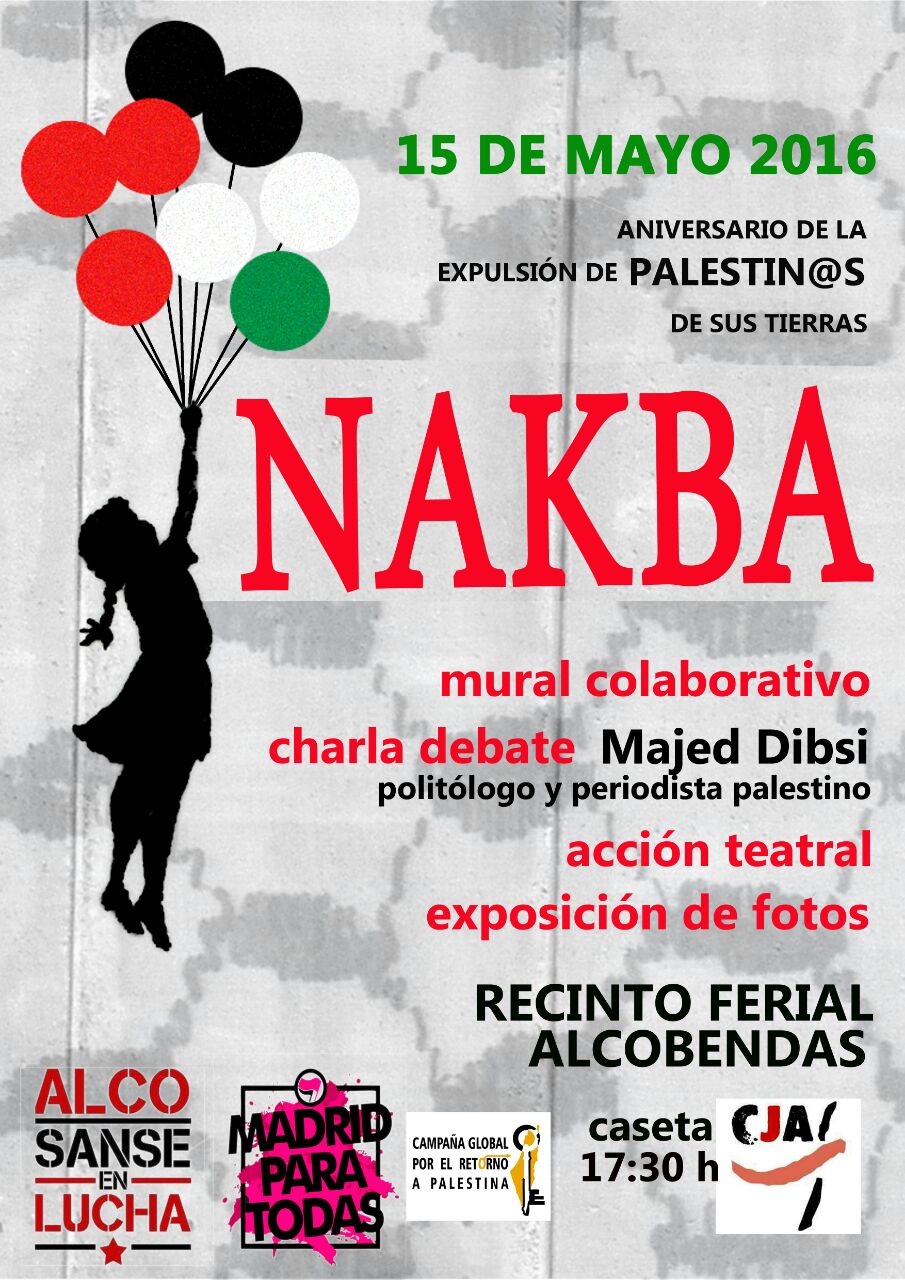 Includes collaborative mural, debate with Majed Dibsi, Palestinian journalist and political analyst, theatrical action, photo exhibition. Organied by Madrid Para Todos, the Global Campaign to Return to Palestine, CJA and Alco Sanse en Lucha