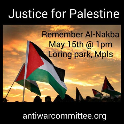 Sunday, 15 May – Organizing for Palestine to Break the Silence. Facebook: https://www.facebook.com/events/271803619829403/