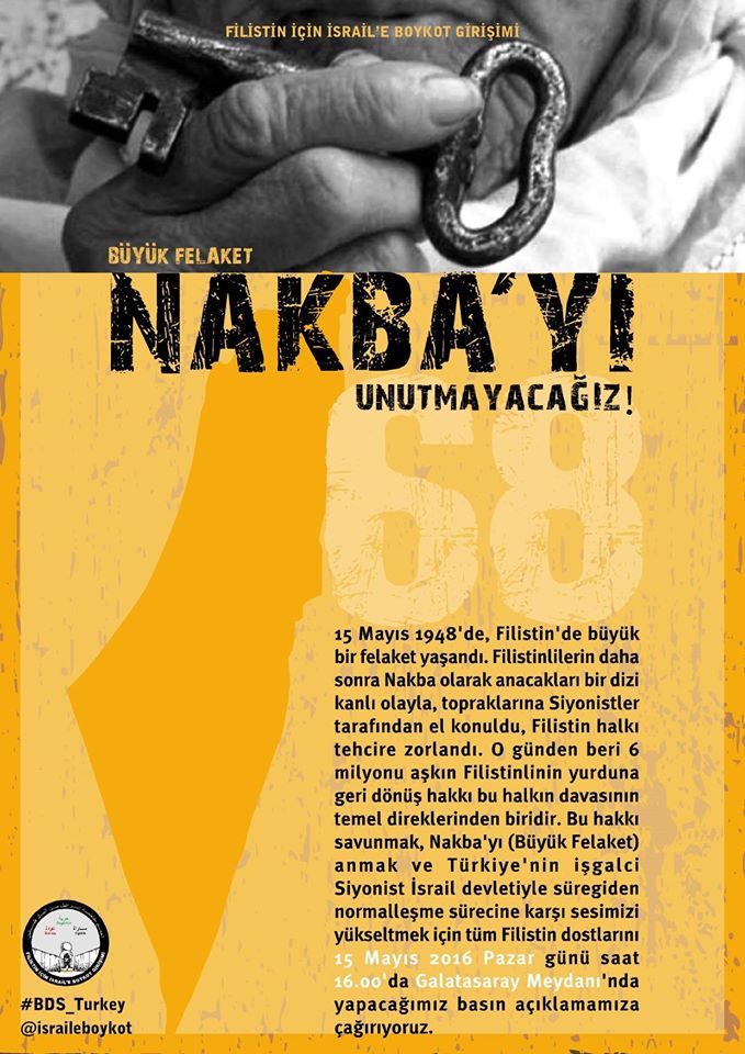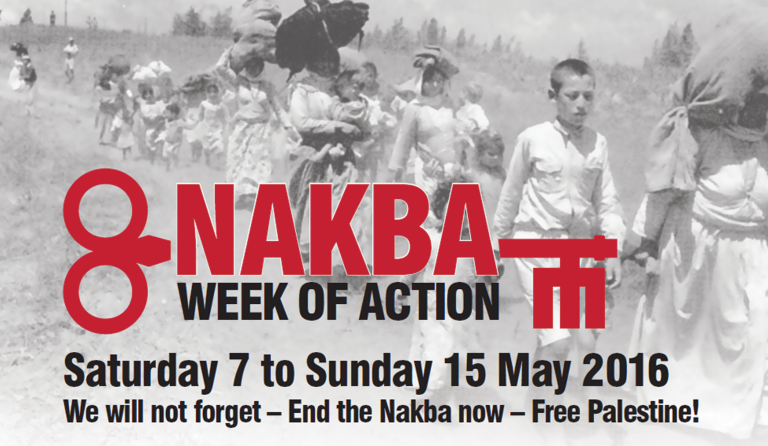 Saturday, 14 May – Nakba Day Commemoration. Facebook: https://www.facebook.com/events/1140770009308235/