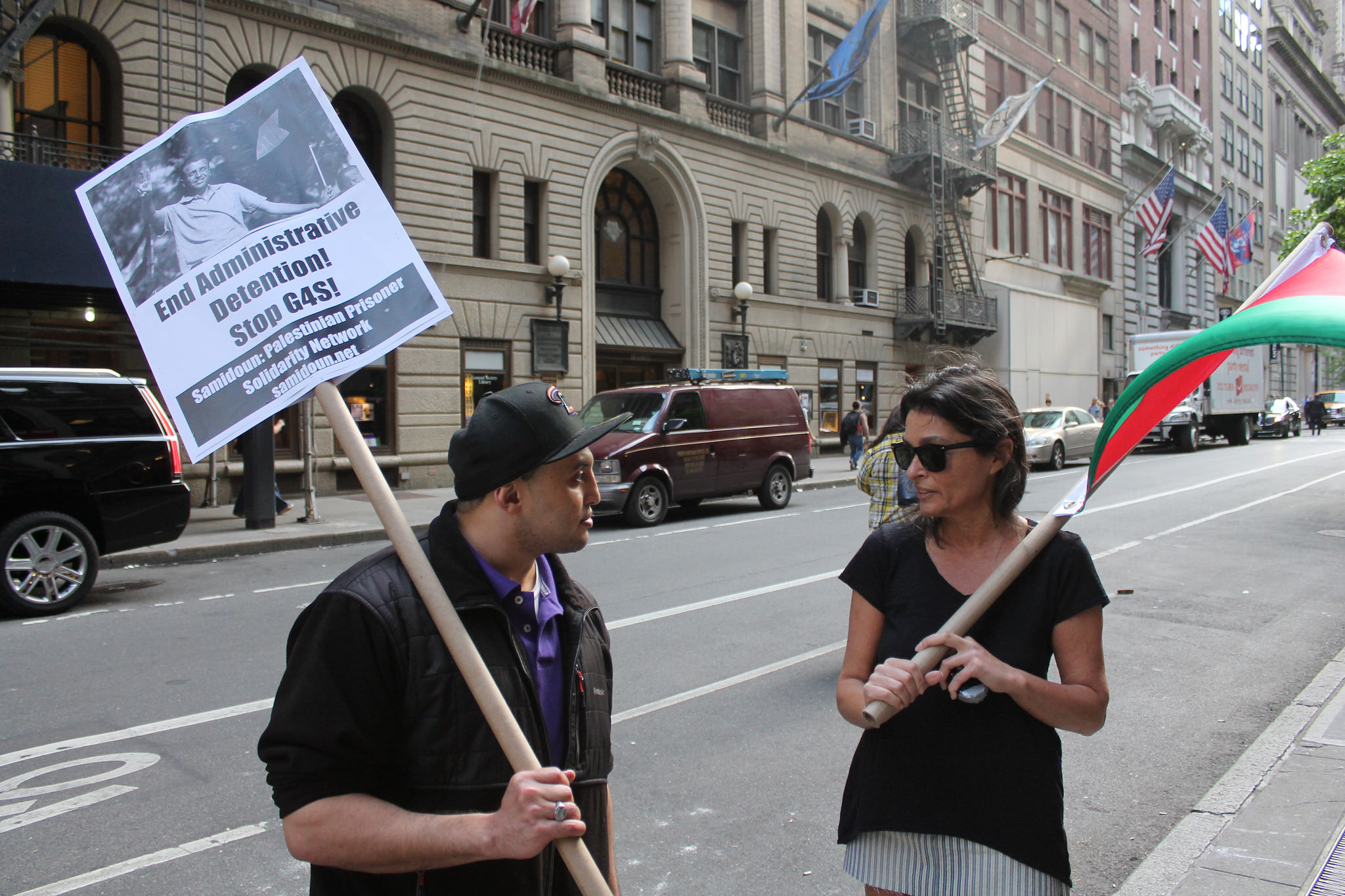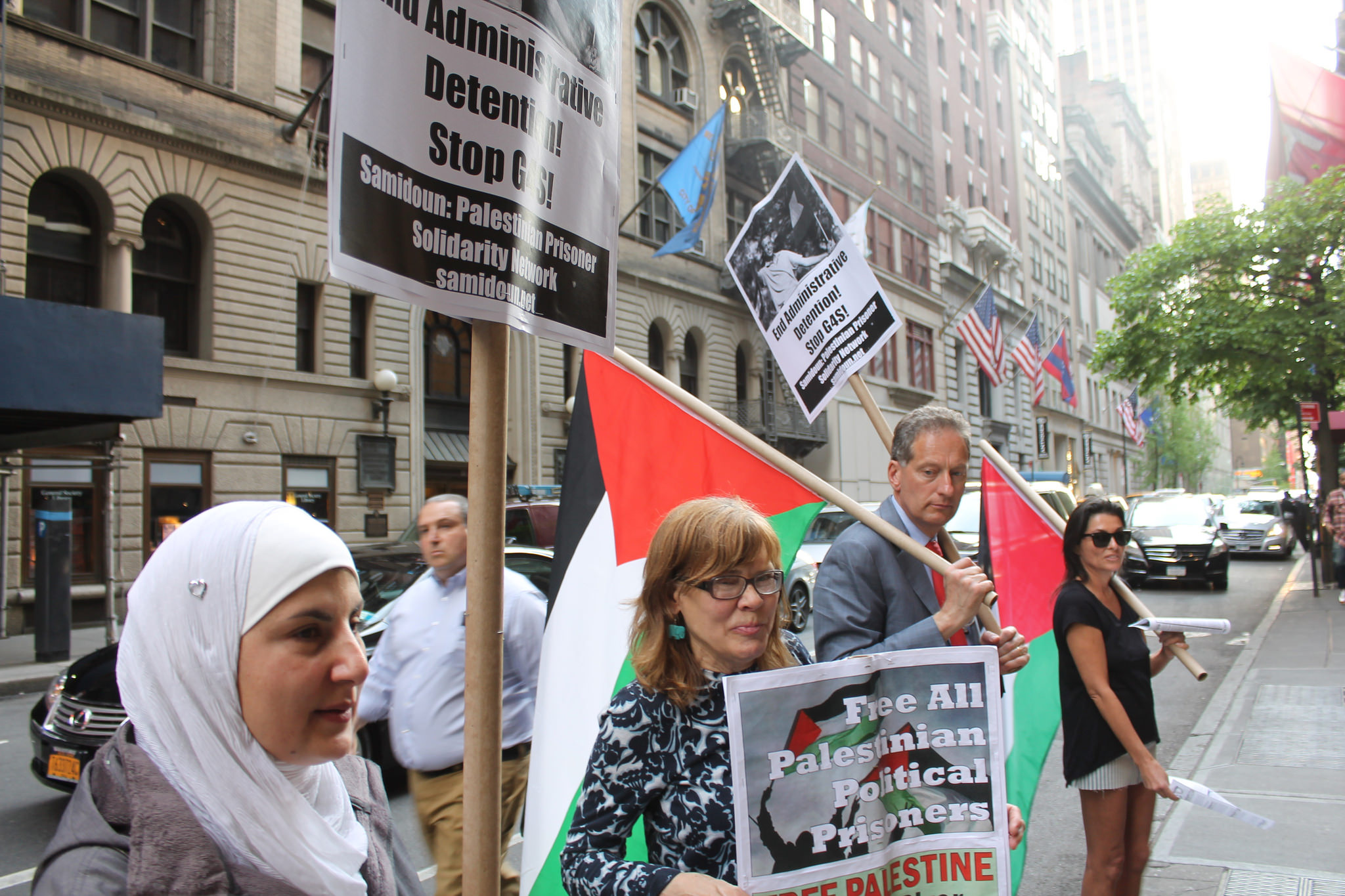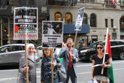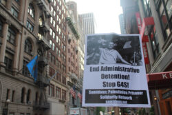Samidoun Palestinian Prisoner Solidarity Network’s weekly New York protest also celebrated the 19 May release of Mohammed al-Qeeq, a Palestinian journalist who conducted a 94-day hunger strike demanding his freedom from administrative detention without charge or trial.