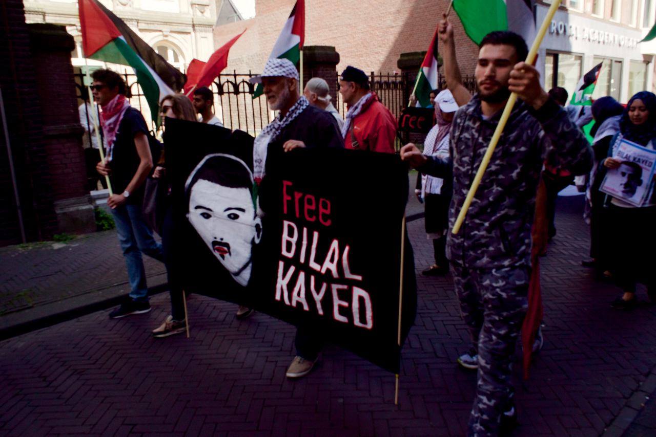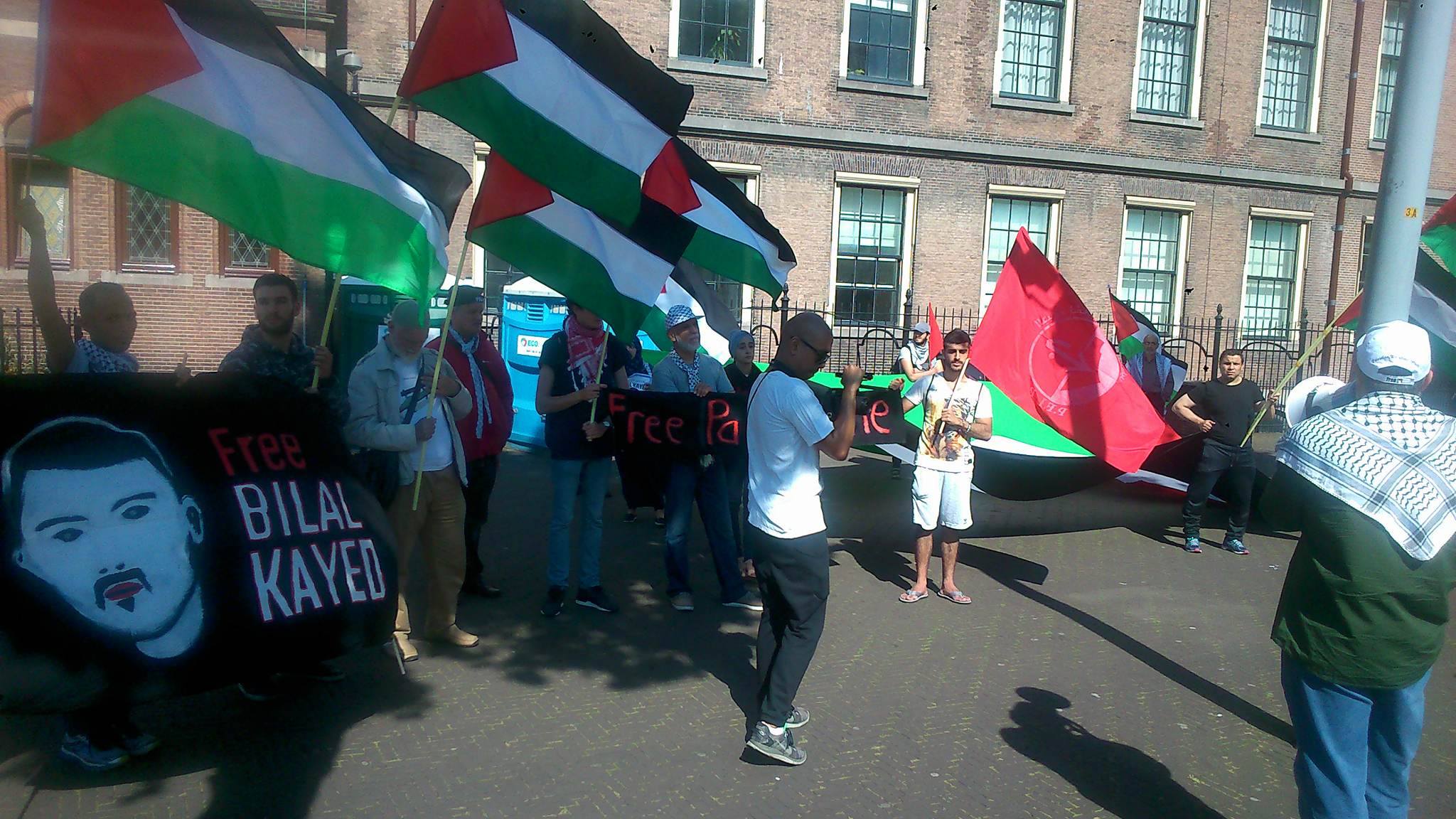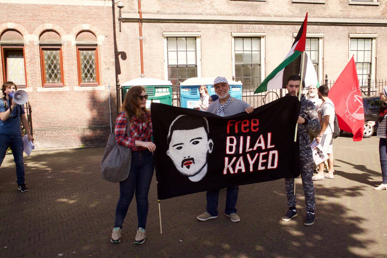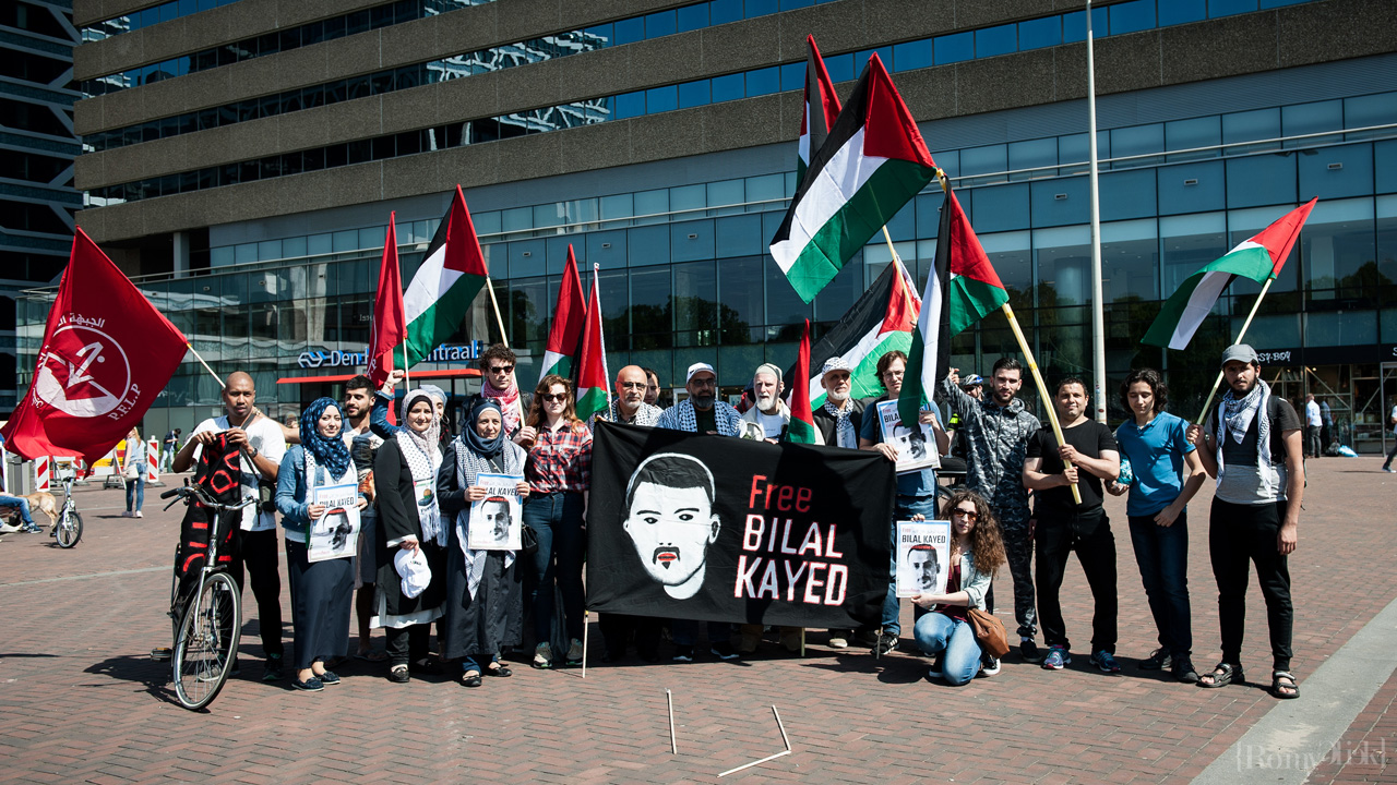 On Friday 24 June, a group of thirty people protested in The Hague in the Netherlands for the freedom of Palestinian political prisoner Bilal Kayed and against state pension benefits for Israeli settlers. The action, organized by Samidoun Palestinian Prisoner Solidarity Network, was supported by a dozen organizations and was part of international protests for the freedom of Bilal Kayed in many cities, including New York, Berlin, Brussels and Paris.