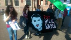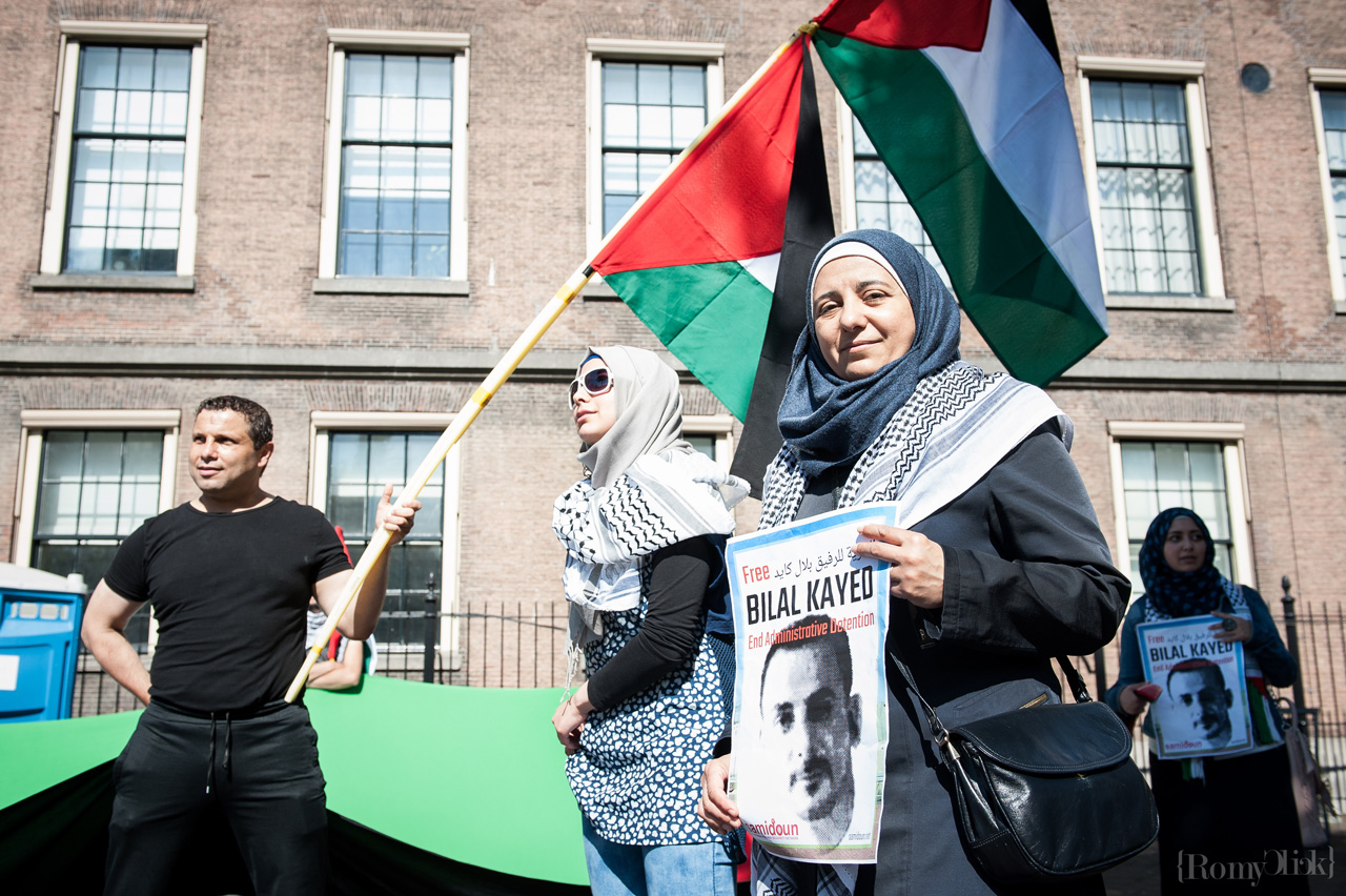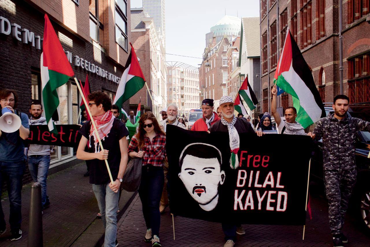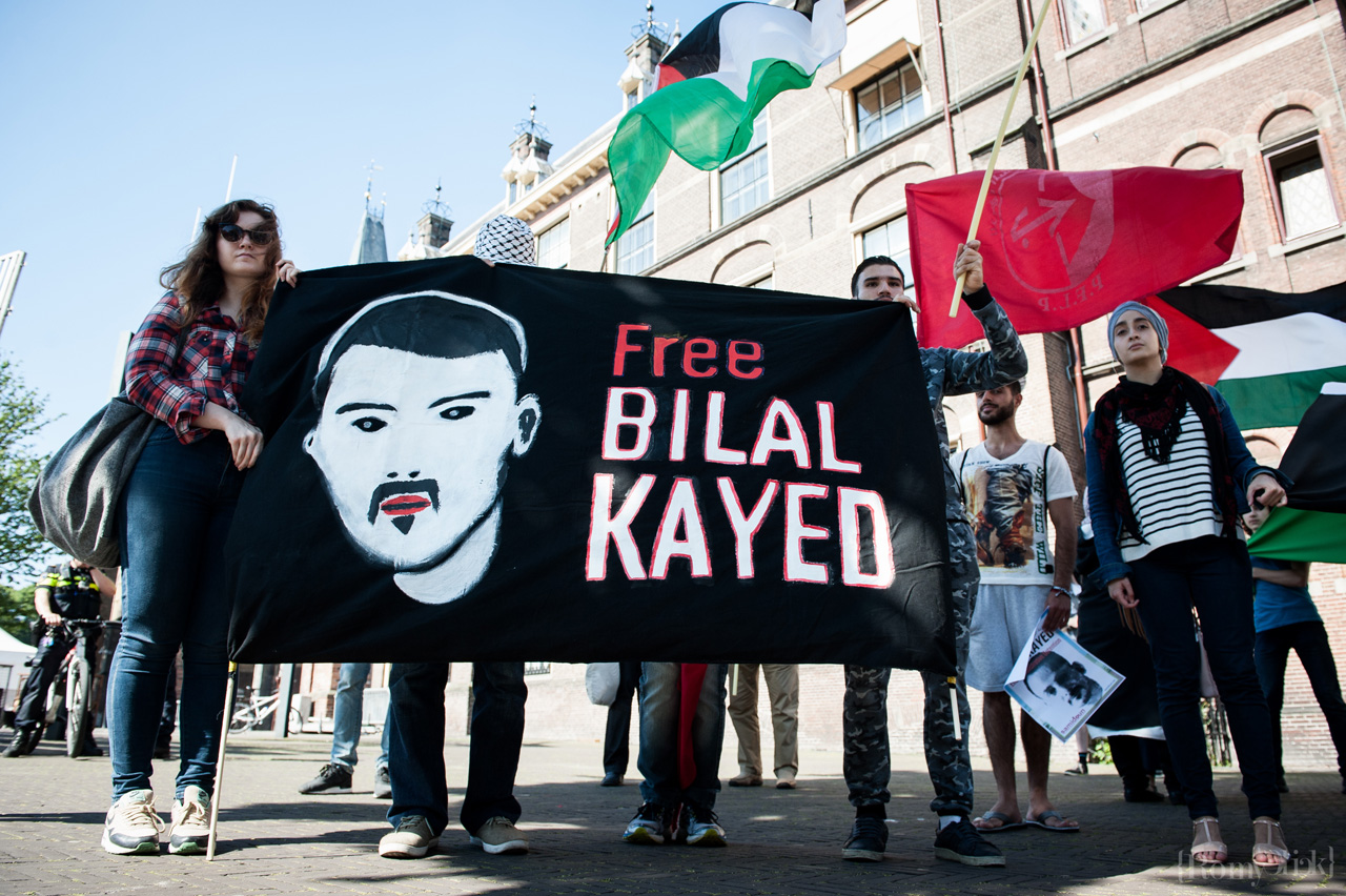 On Friday 24 June, a group of thirty people protested in The Hague in the Netherlands for the freedom of Palestinian political prisoner Bilal Kayed and against state pension benefits for Israeli settlers. The action, organized by Samidoun Palestinian Prisoner Solidarity Network, was supported by a dozen organizations and was part of international protests for the freedom of Bilal Kayed in many cities, including New York, Berlin, Brussels and Paris.