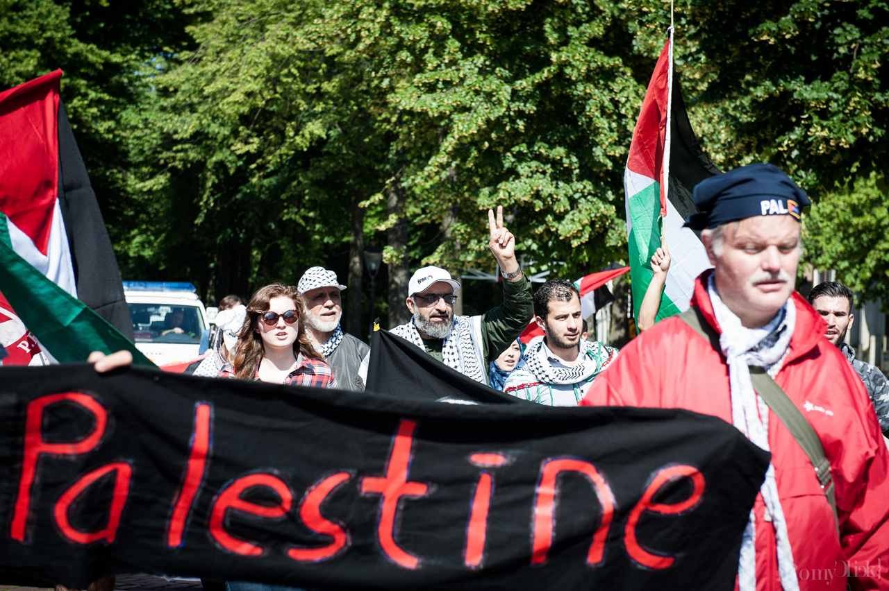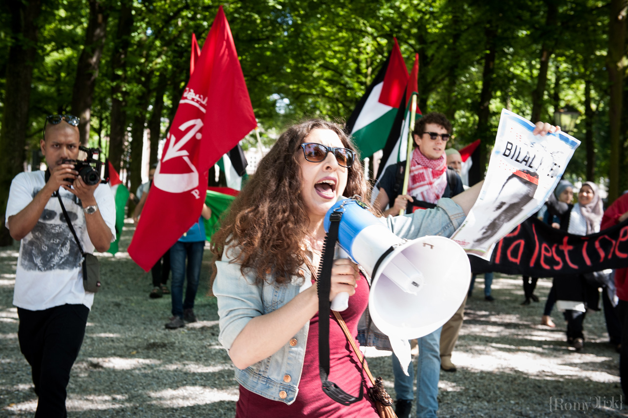 Before arriving to the Drees-monument, a stop was made at the Israeli embassy to make them hear the protest. At the Drees-monument there were speeches by Het Palestijnse Huis, the Palestinian Women Association Netherlands and Samidoun Palestinian Prisoner Solidarity Network.