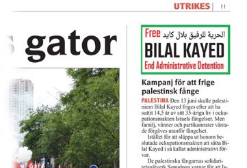In Denmark, the Internationalt Forum/Middle East Group issued a statement and call to action urging support for Kayed and an end to administrative detention; while in Sweden, the newspaper Proletaren reported on Kayed’s case and the international actions taking place demanding his freedom.