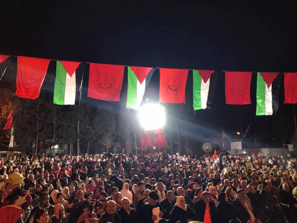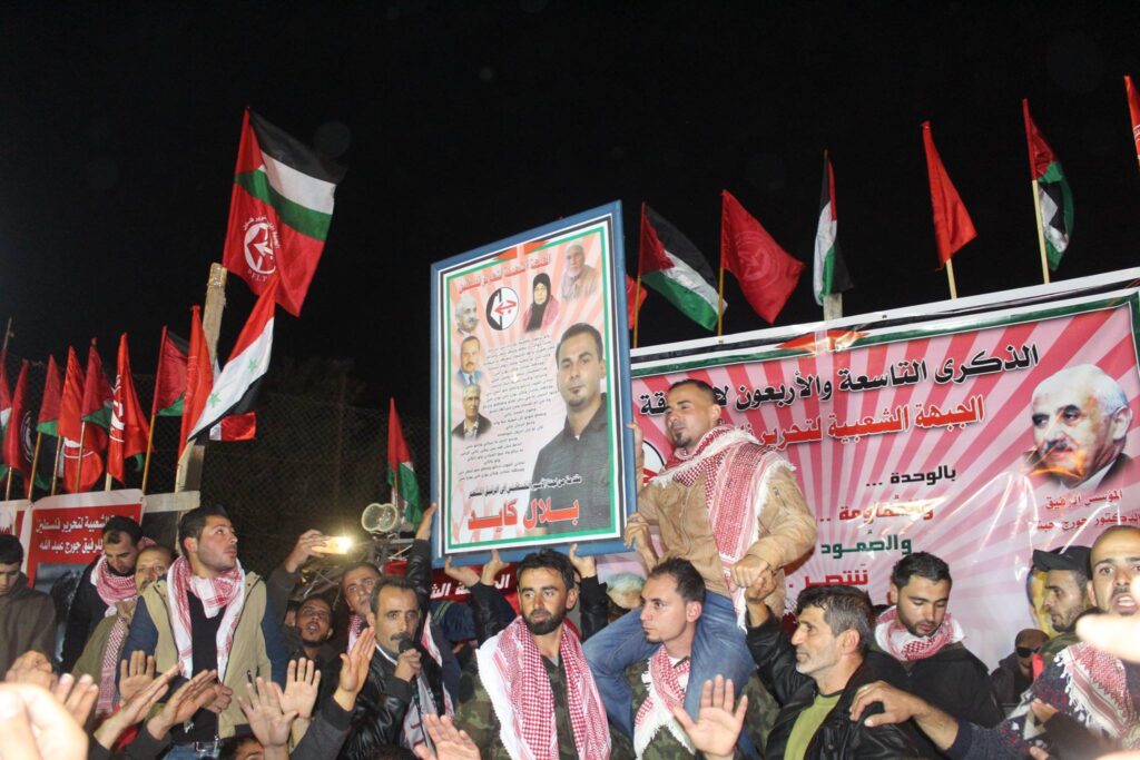 The reception for Kayed’s release was attended by his family, comrades, and friends; he spoke to the crowd, emphasizing the importance of Palestinian national unity and the strength of Palestinian steadfastness. Former hunger strikers Khader Adnan and Mohammed al-Qeeq joined the celebration, as did former prisoners Rula Abu Deho and political leader Khalida Jarrar. Abla Sa’adat, women’s movement activist and the wife of imprisoned PFLP General Secretary Ahmad Sa’adat, also participated in the celebration. Speakers echoed the call to intensify the struggle to free all of the Palestinian political prisoners behind Israeli bars, including current hunger strikers Ahmad Abu Fara and Anas Shadid, on hunger strike for 80 days to demand an end to their administrative detention without charge or trial.