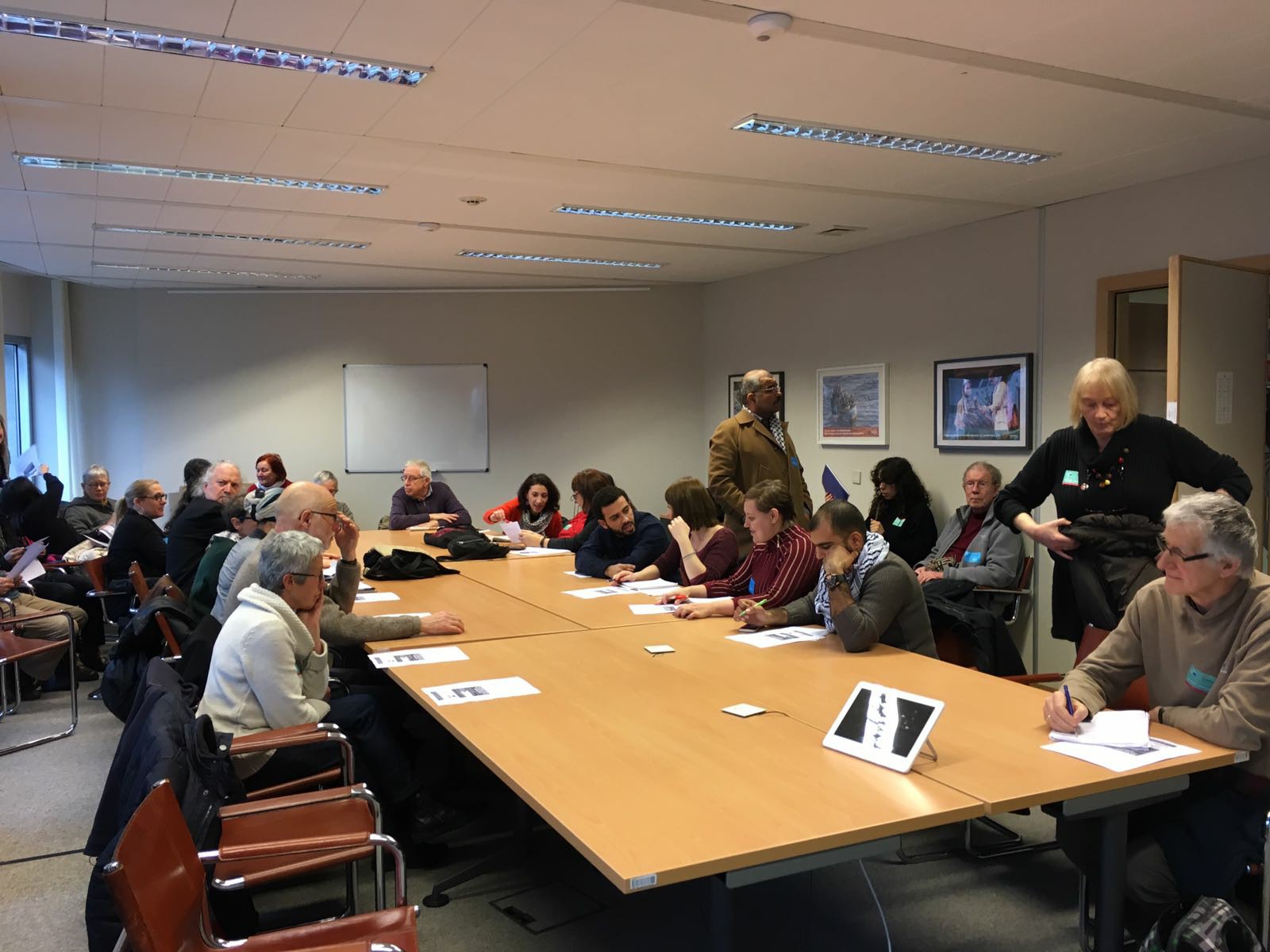 Following the presentations, participants engaged in an active discussion about expanding the BDS movement and confronting targeting and criminalization; towards the end of the event, representatives of the Israeli mission to the EU and other pro-Zionist attendees of the anti-BDS event entered the room in an attempt to film, photograph and disrupt the attendees.