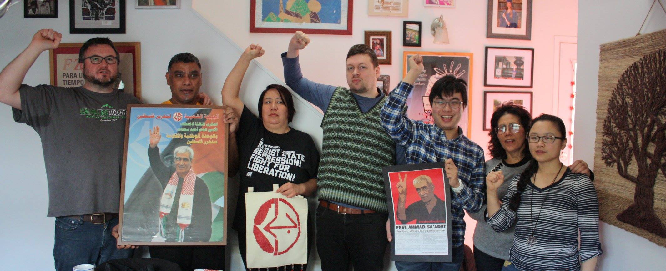 The International League of Peoples’ Struggle in Canada issued the following statement in solidarity with Palestinian prisoner Ahmad Sa’adat and his fellow Palestinians in Israeli jails as part of the International Days of Action in solidarity with Sa’adat, from 13-15 January. The days mark the 15th anniversary of Sa’adat’s imprisonment by the Palestinian Authority at the behest of Israel, the US and UK; today, Sa’adat is imprisoned in Israeli prison serving a 30-year sentence and a leader of the Palestinian prisoners’ movement as well as a national leader. Aiyanas Ormond, the chair of ILPS Canada, also participated via Skype in the Waterloo, Ontario opening of the new International Office of the 32 County Sovereignty Movement on 15 January, speaking about Ahmad Sa’adat and the struggle to free political prisoners: