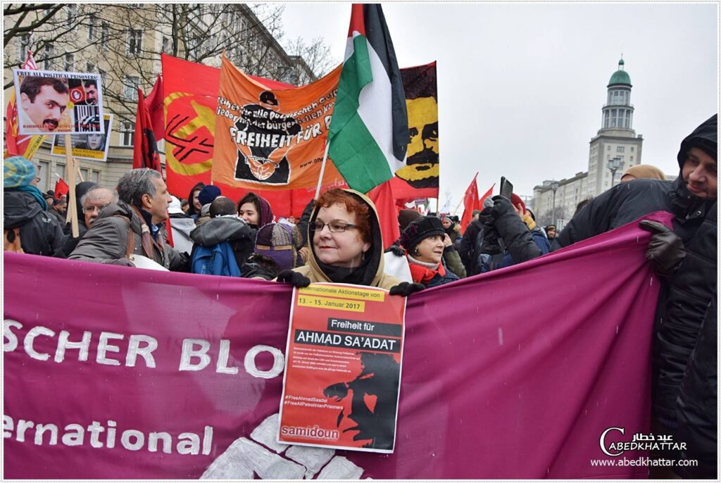In Berlin, Germany, the Democratic Palestine Committees-Berlin organized a Palestine contingent in the Liebknecht-Luxemburg-Lenin march, which drew over 15,000 leftists to demonstrate on the 98th anniversary of the execution of German revolutionary leaders Rosa Luxemburg and Karl Liebknecht. Participants carried Palestinian flags and signs demanding freedom for imprisoned strugglers including Ahmad Sa’adat and Georges Ibrahim Abdallah. Ghazi Hamad of the Democratic Palestine Committees spoke about the Palestinian struggle at the central rally.