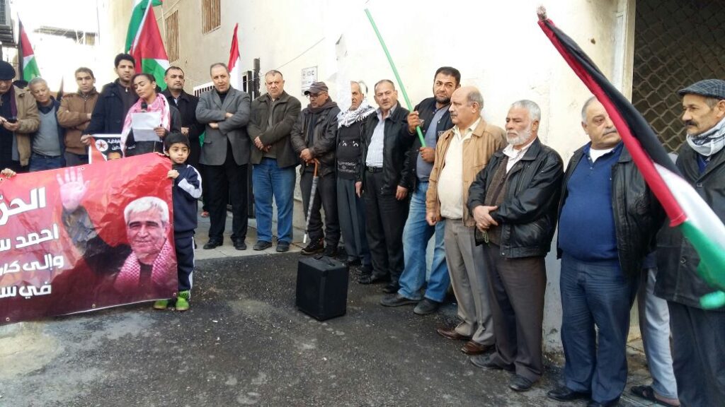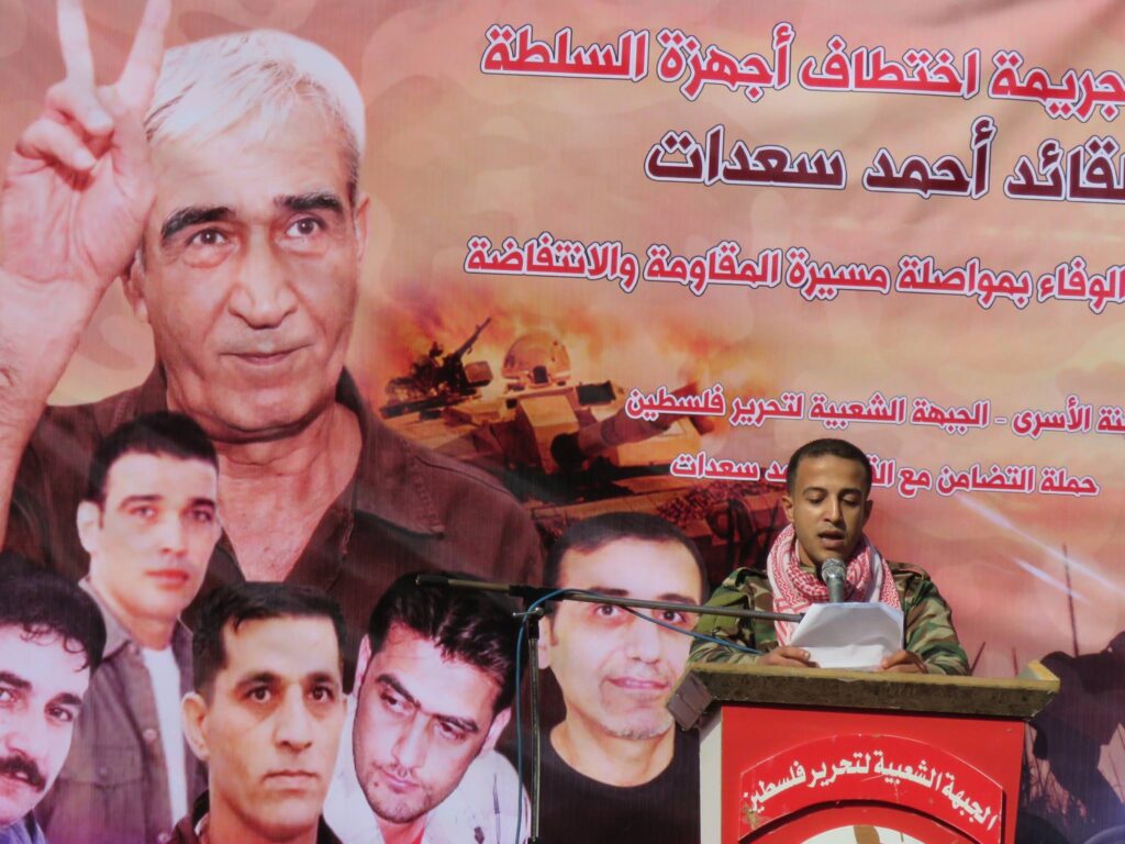 In Damascus, Syria, Palestinians gathered in the headquarters of the Popular Front for the Liberation of Palestine for an event in solidarity with Sa’adat and fellow Palestinian prisoners. Former prisoner Ahmad Abu Saud spoke at the event.