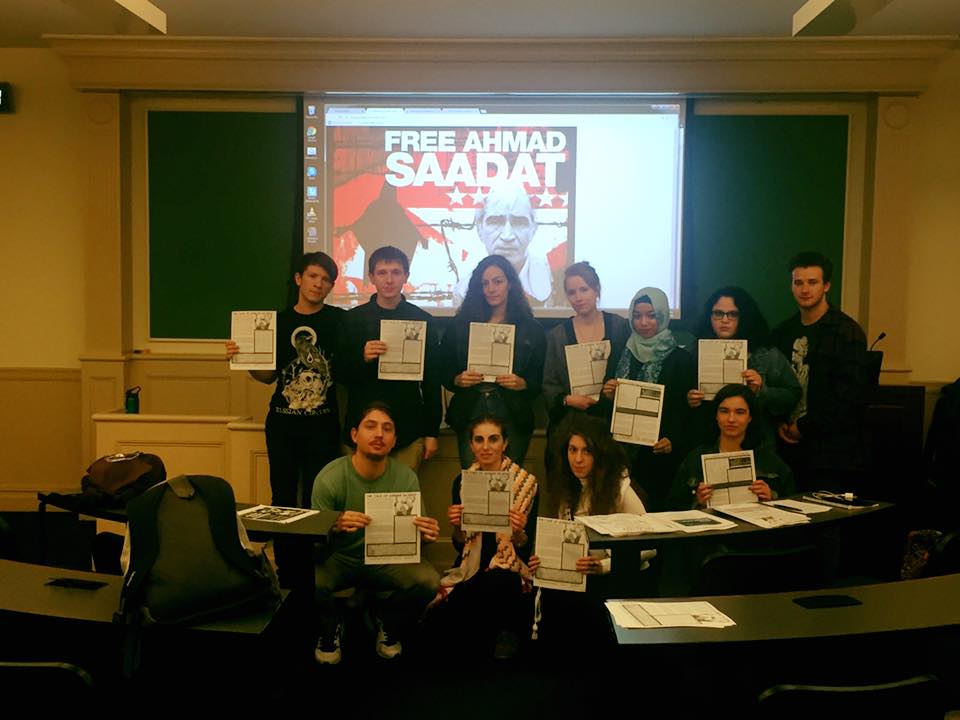 Samidoun Palestinian Prisoner Solidarity Network and the Campaign to Free Ahmad Sa’adat thank all of the organizations and activists that participated in these days of action and look forward to continuing to work together and struggle until the freedom of Ahmad Sa’adat, all Palestinian prisoners and the land and people of Palestine.