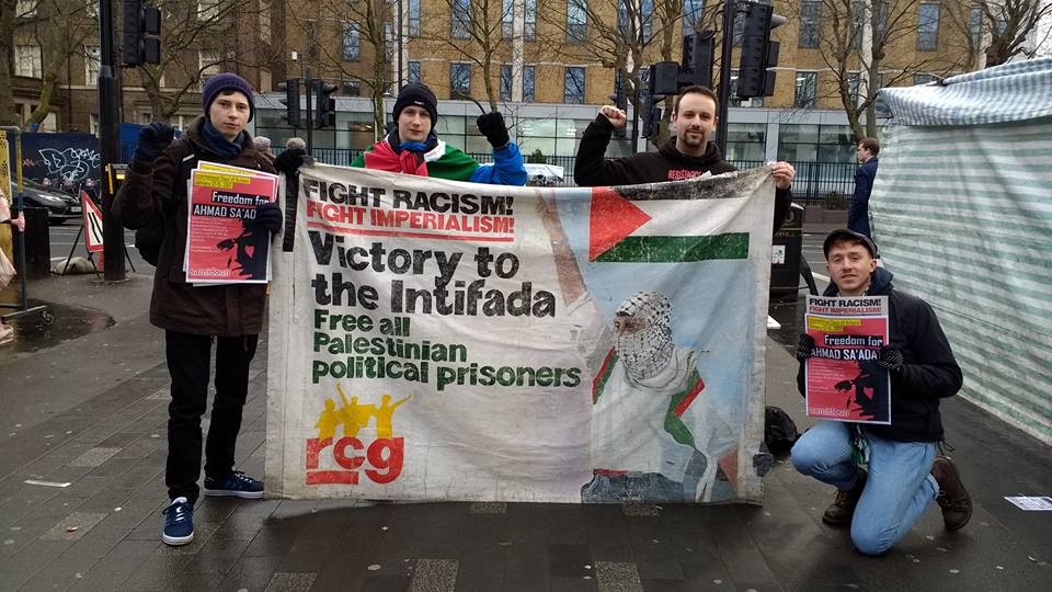 In London, Revolutionary Communist Group and Samidoun supporters organized two actions to demand freedom for Sa’adat and his fellow Palestinian prisoners. In Brixton, South London RCG held a street meeting, distributing literature and raising awareness about the campaign to free Palestinian prisoners.