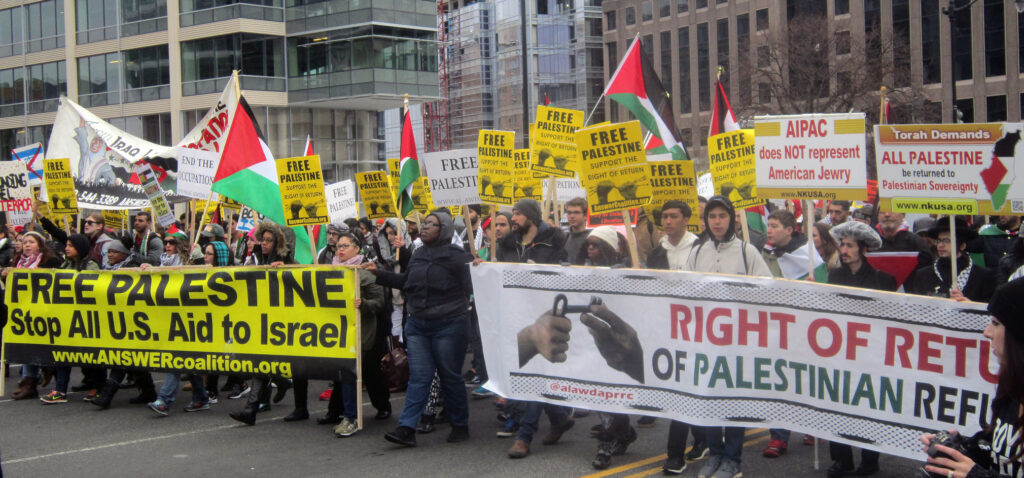 The National Rally to Support Palestine in D.C. is co-sponsored by the Ohio chapter of the Al-Awda, The Palestine Right To Return Coalition, and Midwest affiliates, and the ANSWER Coalition.