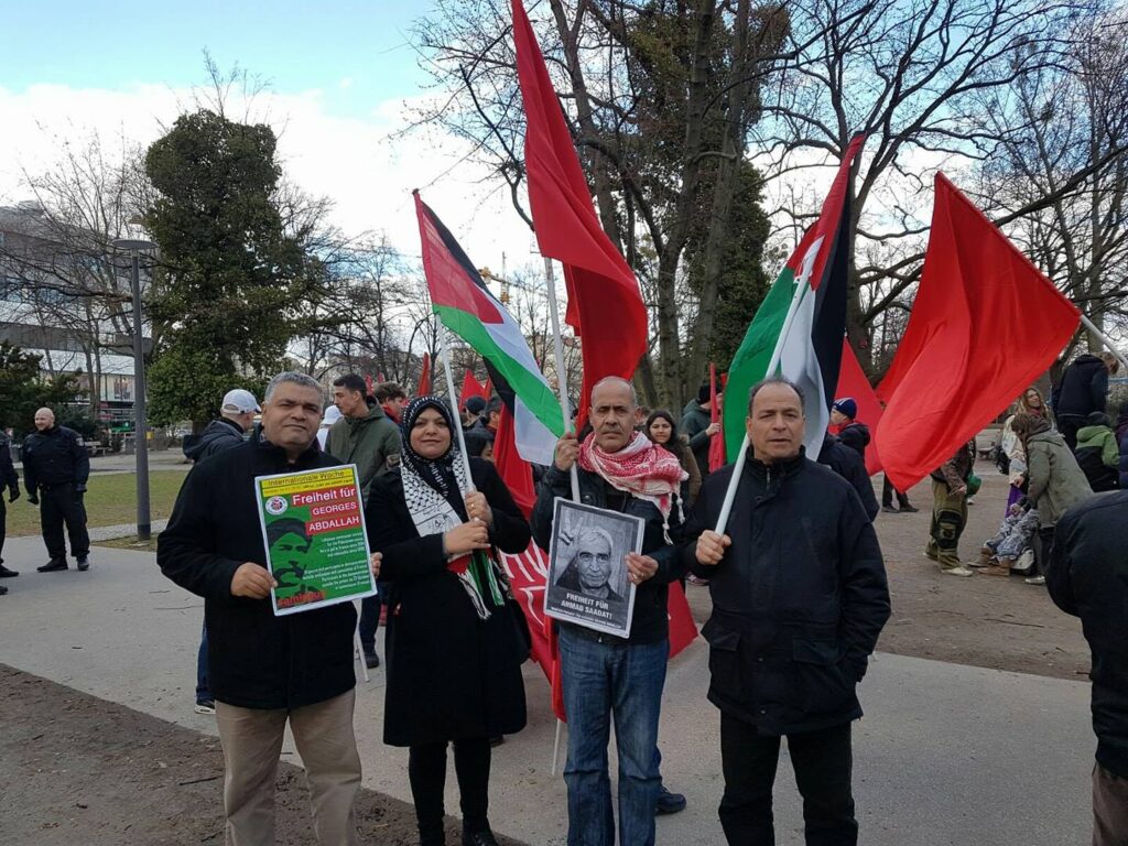The Paris event coincided with other international events for the Day of Revolutionary Political Prisoners, which commemorates the 1923 founding of the International Red Aid by the Communist International as well as marking the anniversary of the Paris Commune. In Turkey, activists gathered to support Turkish and Kurdish political prisoners in Turkey’s jails, while also saluting Georges Abdallah, Ahmad Sa’adat, Rasmea Odeh and other strugglers for justice. In Brussels, Secours Rouge held an event that highlighted revolutionary prisoners in Europe, Palestine, Turkey, Peru, the Philippines and the United States, including messages from Abdallah and from Palestinian political prisoners. In Berlin, Germany, activists from the Democratic Palestine Committees joined the demonstration organized by Jugendwiderstand, carrying posters demanding freedom for Abdallah, Sa’adat and fellow political prisoners.